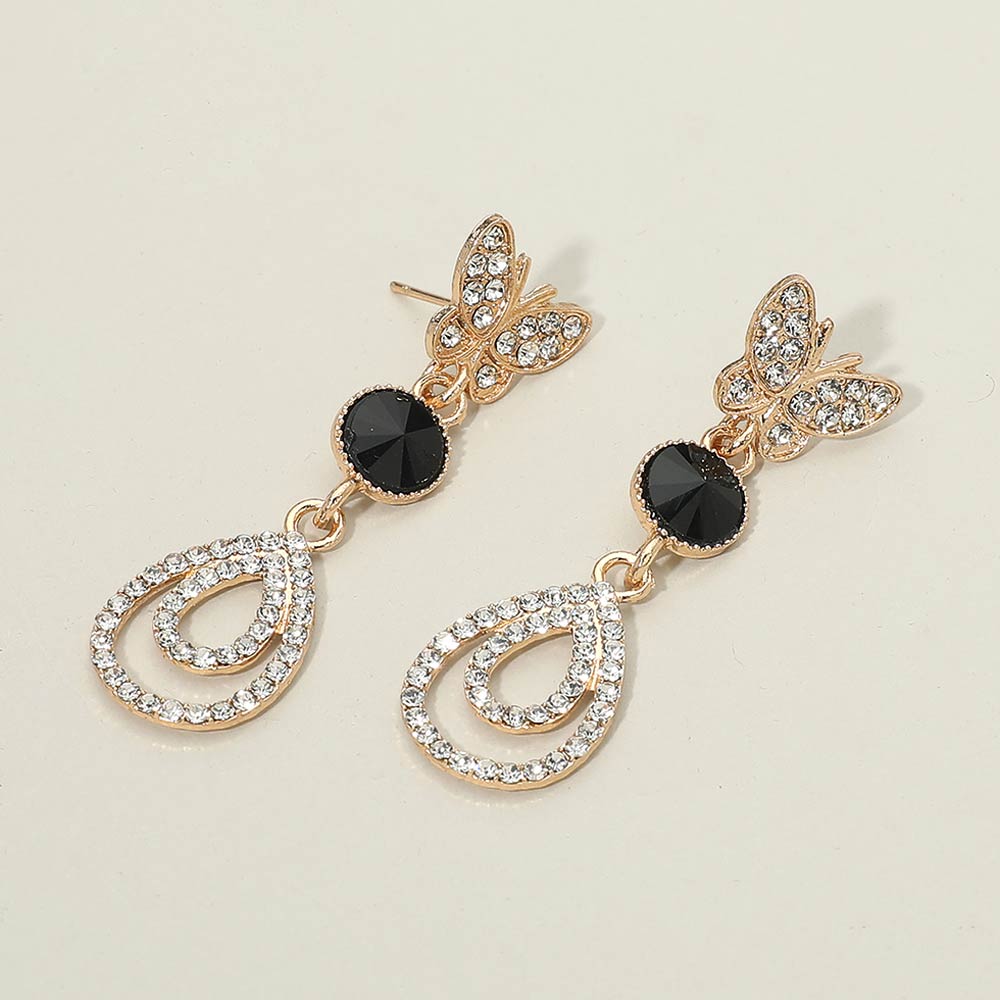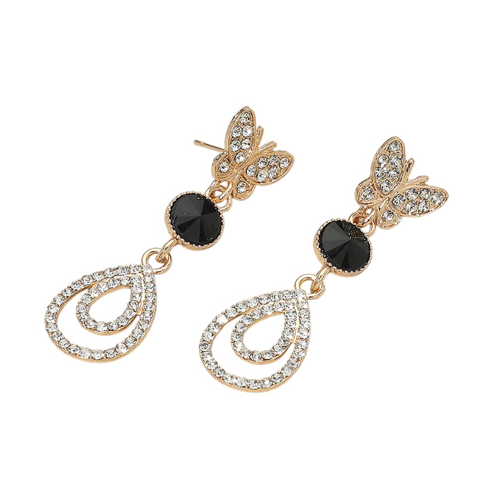 Details • Size : 0.8" X 2" • Post Back • Elegant drop earrings featuring a delicate butterfly stud paired with a layered teardrop silhouette and faceted accent. Designed for graceful movement and refined sparkle, they are lightweight and comfortable. Ideal for weddings, parties, formal events, and gifting with timeless appeal.