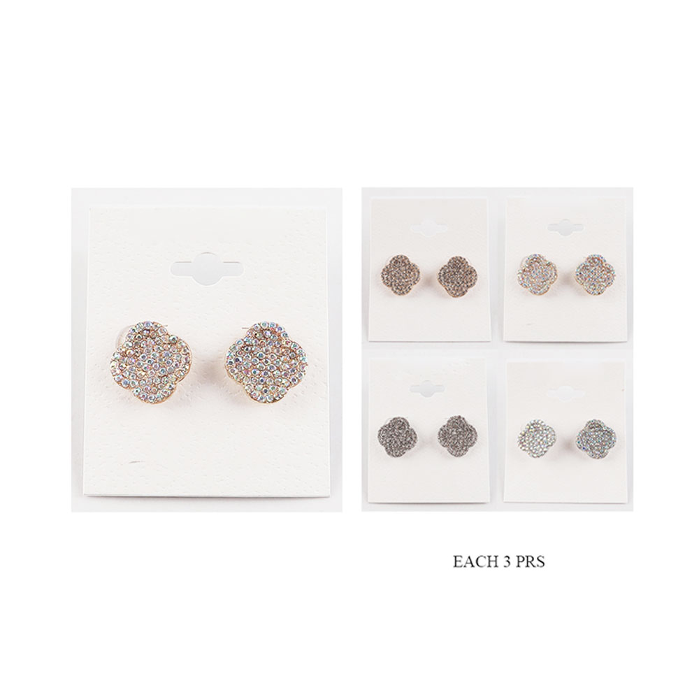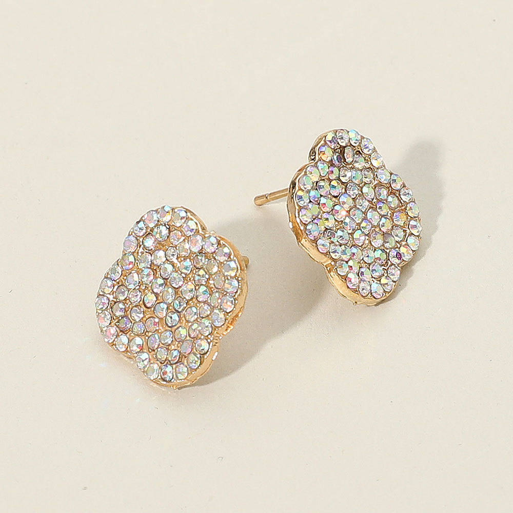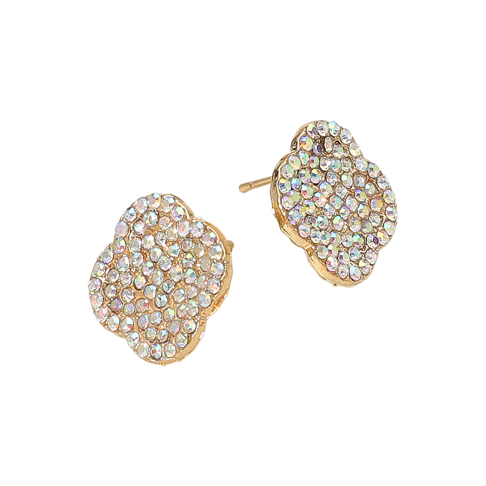Details • Size : 0.7" X 0.7" • Post Back • These rhinestone quatrefoil stud earrings feature a timeless four-petal silhouette adorned with shimmering crystals for a radiant finish. Perfect for both casual and elegant looks, they add a refined sparkle that enhances any outfit with a subtle touch of sophistication and modern charm.