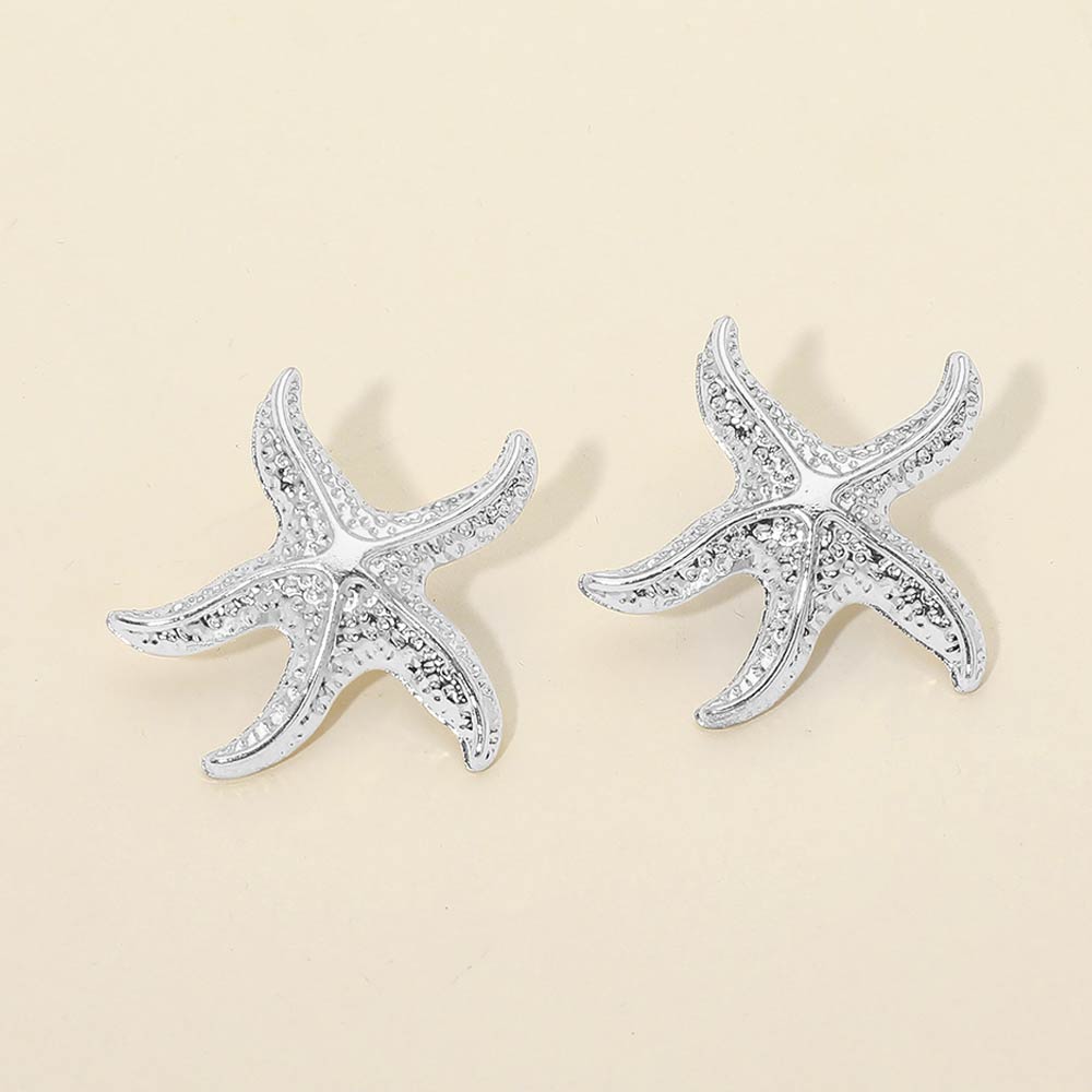 Details • Size : 1.4" X 1.4" • Post Back • These starfish stud earrings feature a sculpted ocean-inspired design with textured detailing that adds dimension and charm. Ideal for summer outfits, beach vacations, resort wear, or everyday styling, they offer a playful yet polished accent that pairs easily with casual and dressy looks.