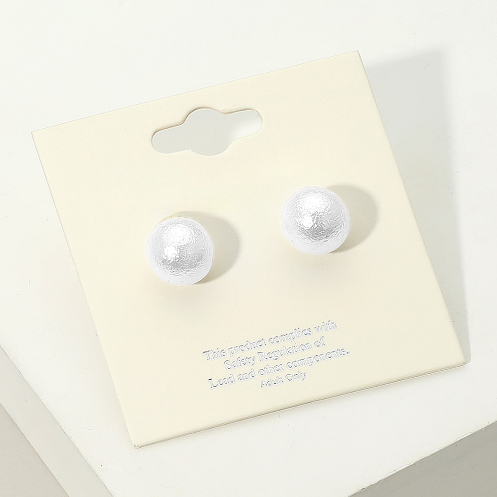 Details • Size : 0.3" X 0.3" • Post Back • These textured pearl ball stud earrings feature a modern, minimalist design that complements any outfit. Perfect for everyday wear or elegant occasions, their subtle shimmer and refined finish make them a timeless accessory that enhances effortless sophistication. • Lead and Nickel Compliant