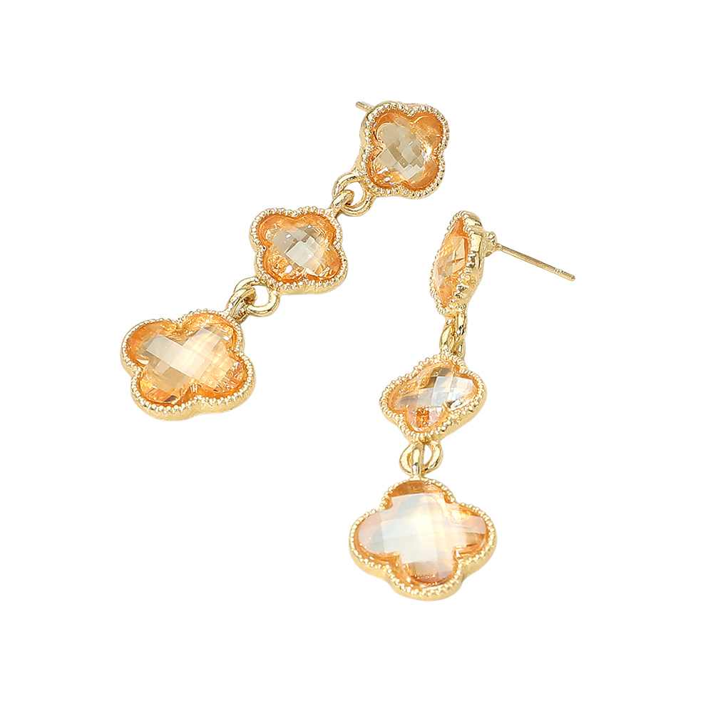 Details • Size : 0.6" X 2" • Post Back • Elegant dangling earrings featuring multi quatrefoil accents arranged in a delicate linked design. Perfect for adding a touch of charm to both casual and dressy looks, these earrings offer a refined style that makes a beautiful addition to any jewelry collection.