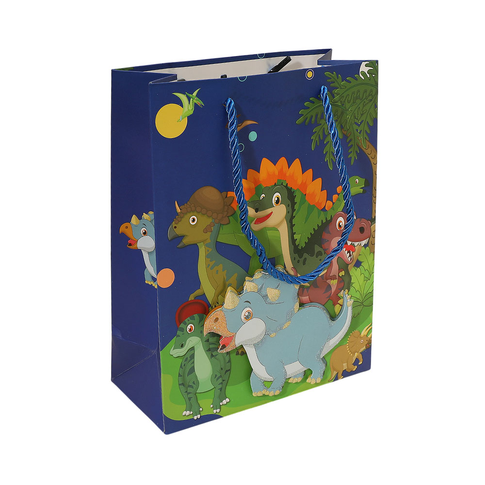 Details • Size : 7" X 9.25" X 3.35" • Top Handle Size : 4.75" L • Dinosaur Character Gift Bag features a fun illustrated scene with a spacious interior and sturdy carry handles, ideal for party favors, toys, snacks, or giveaways. Great for birthdays, school events, themed celebrations, and retail packaging with easy transport and reuse.