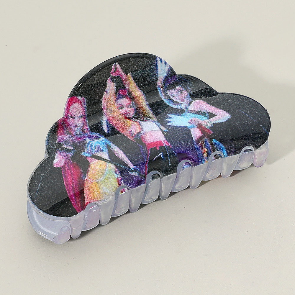 Details • Size : 3.5" X 1.75" • Add a bold touch to your hairstyle with this huntrix anime character printed cloud hair claw clip featuring vibrant printed designs. Its sturdy grip keeps hair securely in place while making a playful fashion statement. Perfect for casual looks or adding personality to your everyday style.