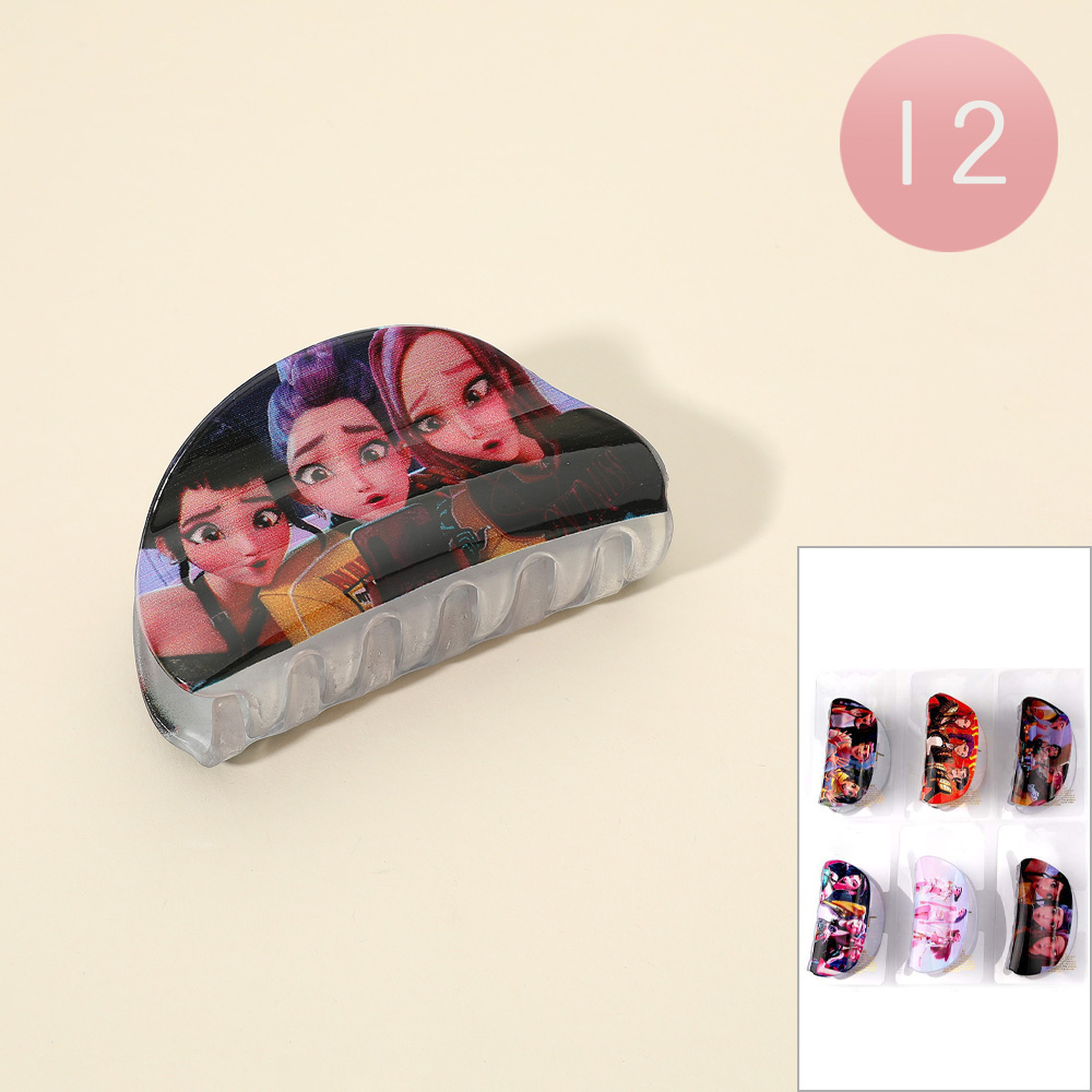 12PCS - Huntrix Anime Character Printed Half Moon Hair Claw Clips
