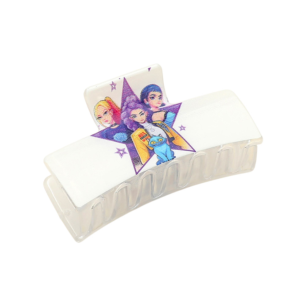 Details • Size : 3.5" X 1.75" • Rectangular kpop demon hunters huntrix character-inspired hair claw clip designed for secure hold and easy everyday styling. This novelty hair accessory adds playful personality to casual looks, making it ideal for school wear, gifting, and impulse displays. A youth-focused, trend-driven item that performs well in seasonal and character accessory collections.
