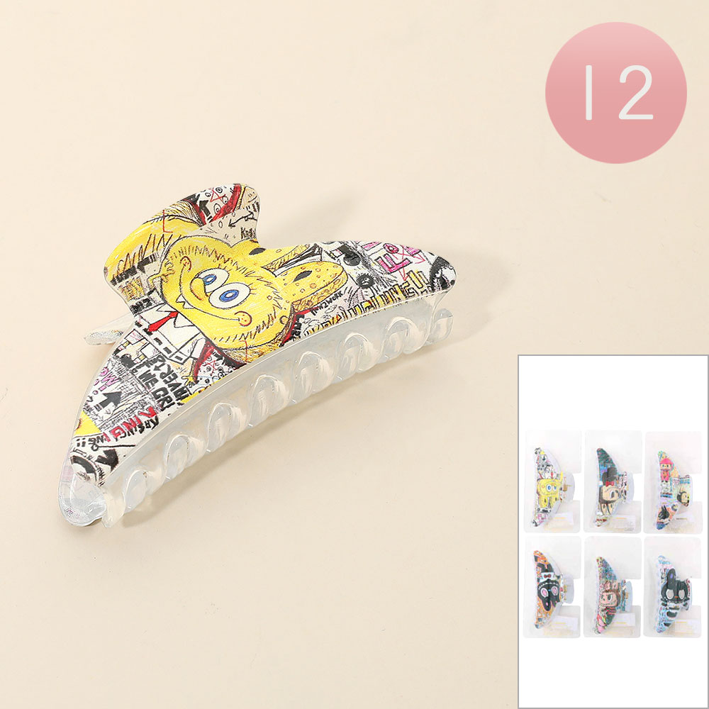 12PCS - Monster Bunny Character Printed Hair Claw Clips