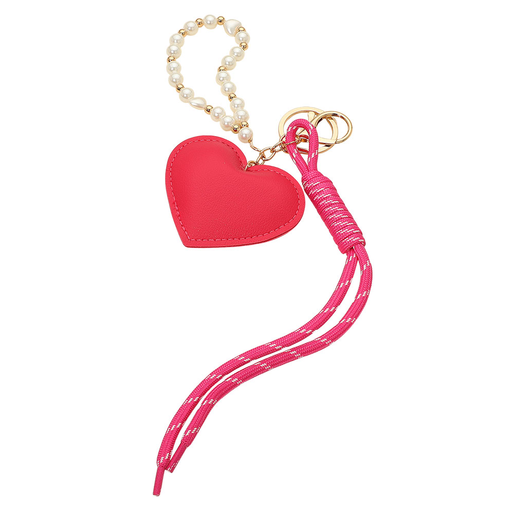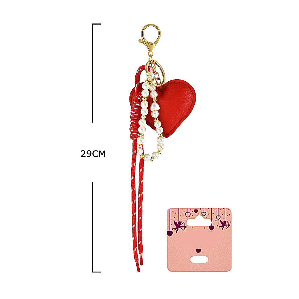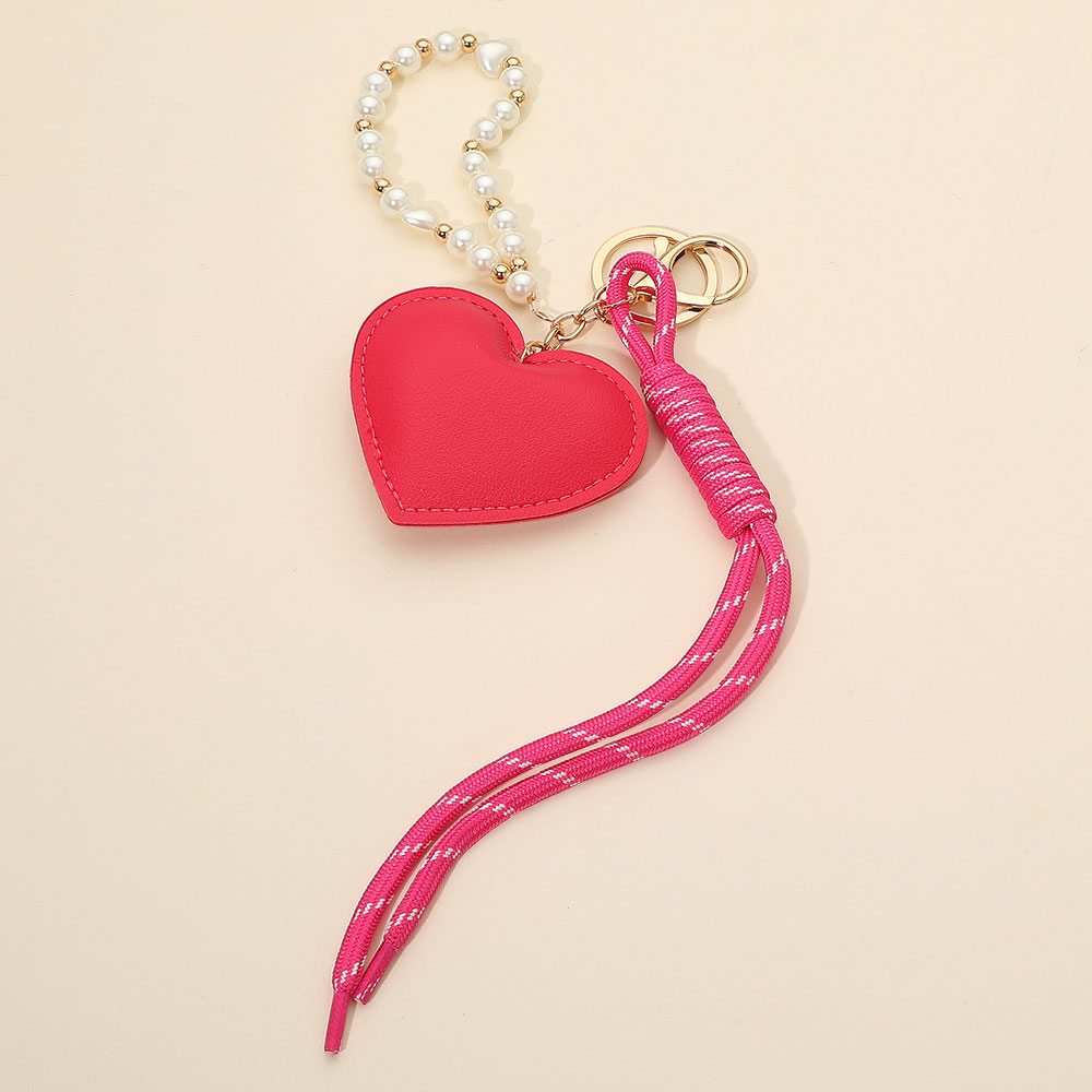 12PCS - Faux Leather Heart Charm Pearl Beaded Rope Tassel Keychains