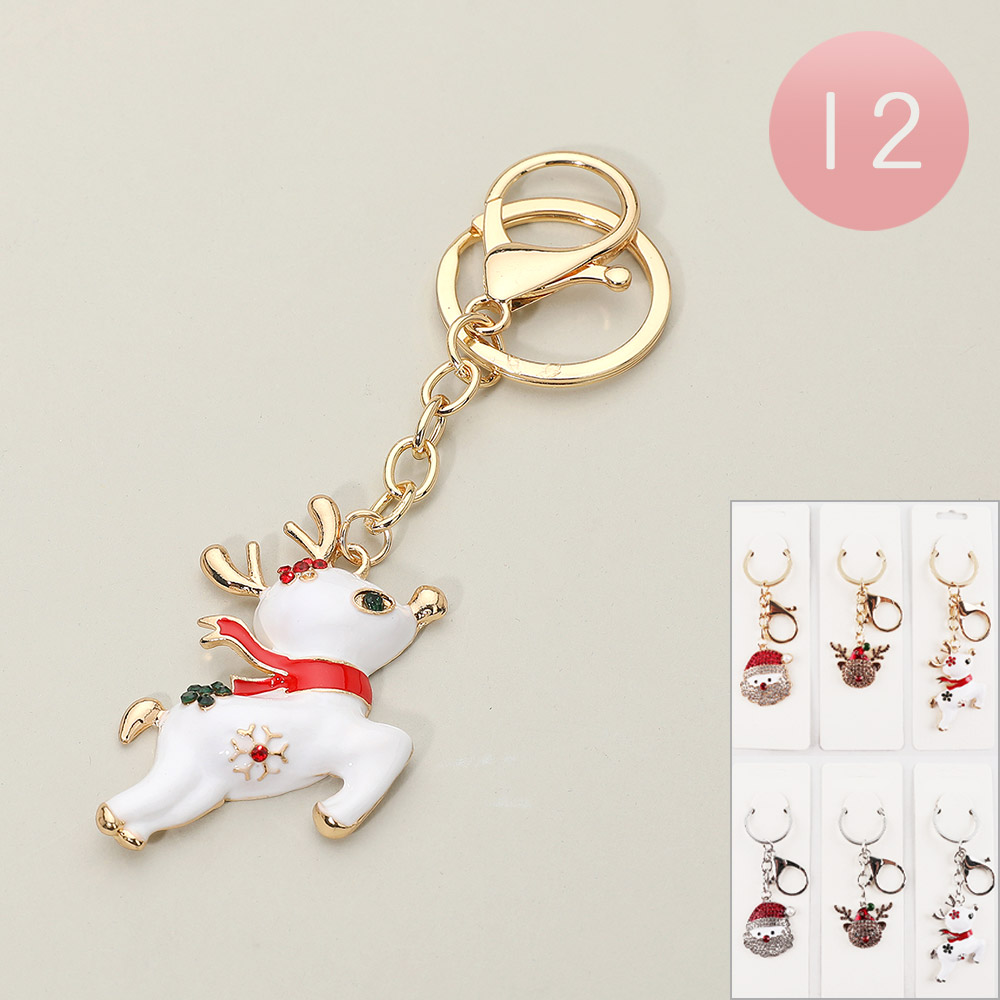 12PCS - Festive Holiday Reindeer Santa Keychains
