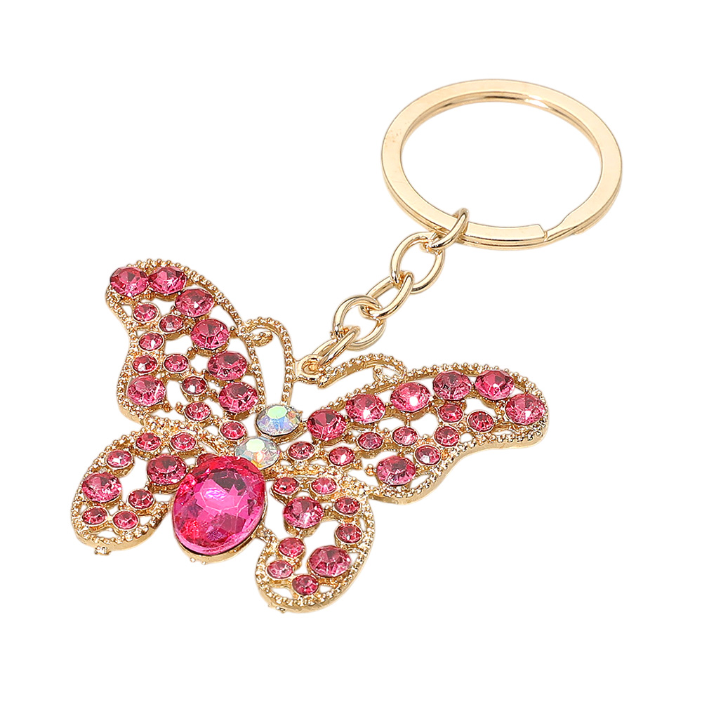Details • Size : 4" L, 2.25" X 2.25" • Elevate your accessories with this dazzling butterfly keychain charm, adorned with sparkling crystals for a touch of elegance. Perfect for adding glamour to your keys, handbags, or pouches, this chic piece blends playful design with refined style for everyday sophistication. • Lead and Nickel Compliant