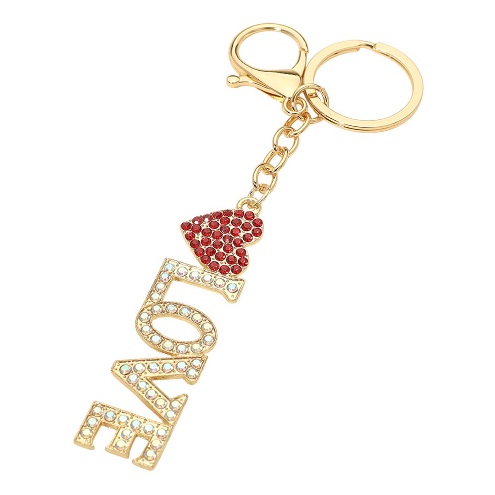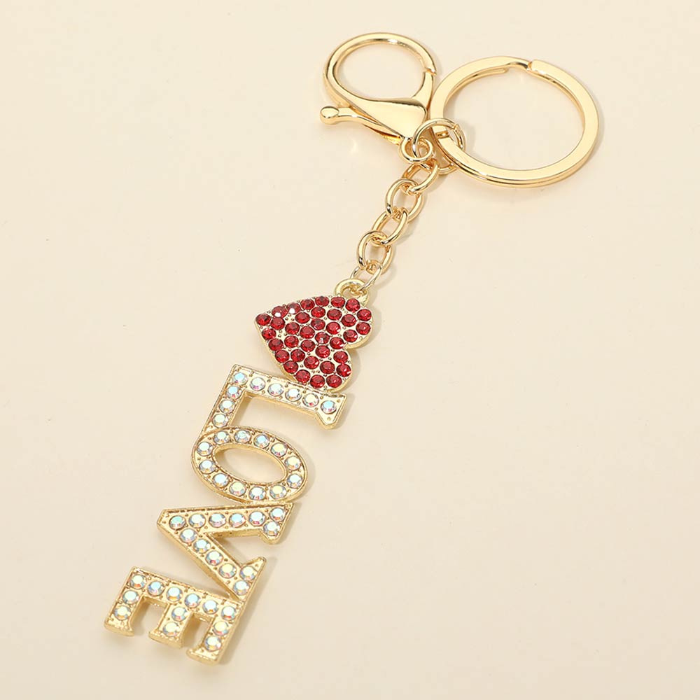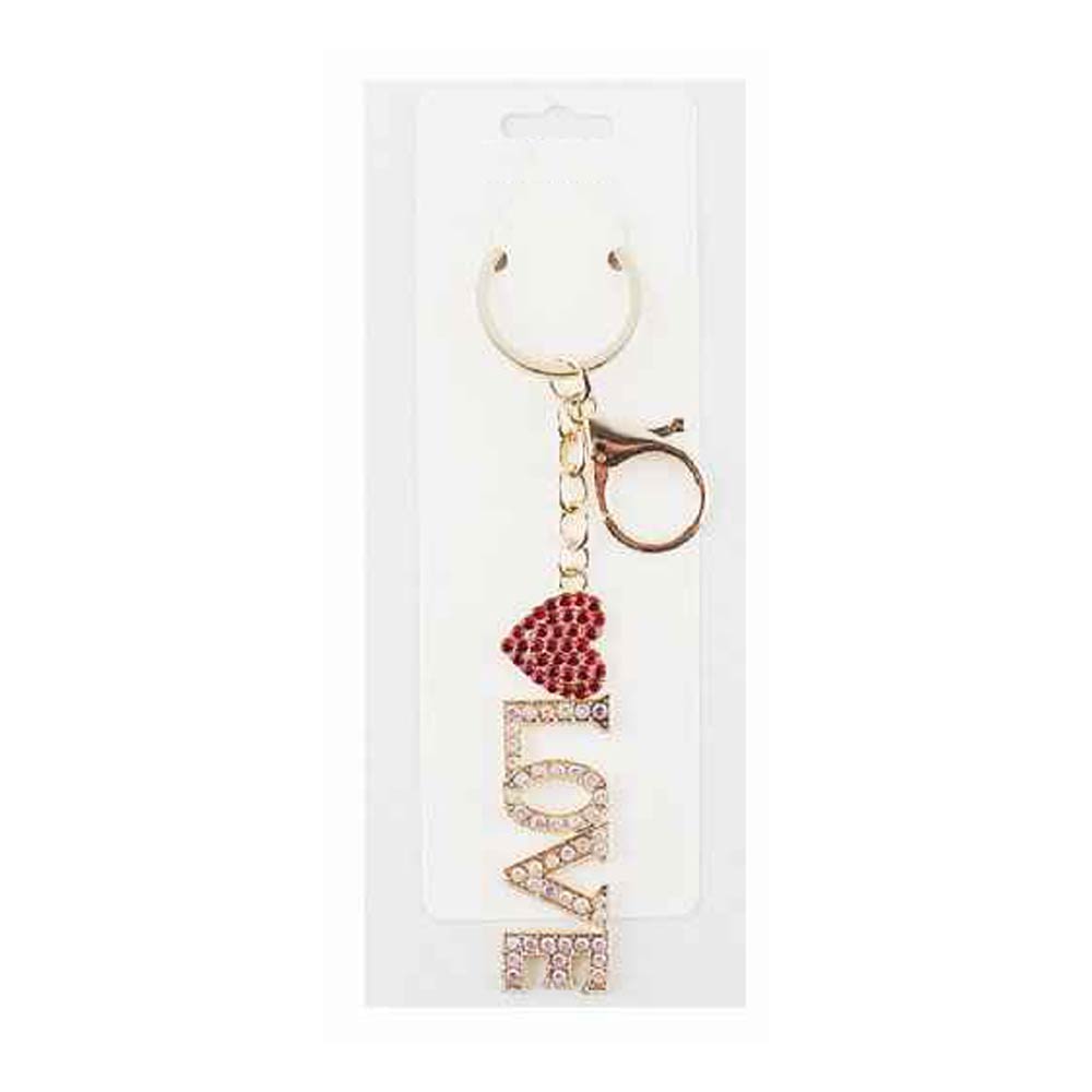 Details • Size : 5.6" L, 1.2" X 4.6" • Love letter charm keychain featuring sparkling rhinestone accents and a heart detail. Designed with a secure keyring and lobster clasp for easy attachment to keys, handbags, or backpacks. Perfect for gifting, boutique displays, romantic-themed collections, party favors, and everyday accessory styling.