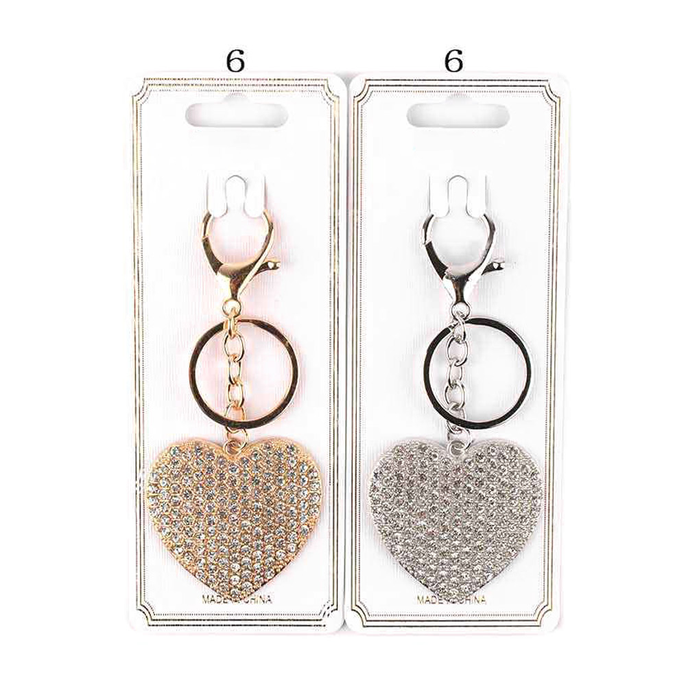 12PCS - Rhinestone Paved Heart Keychains