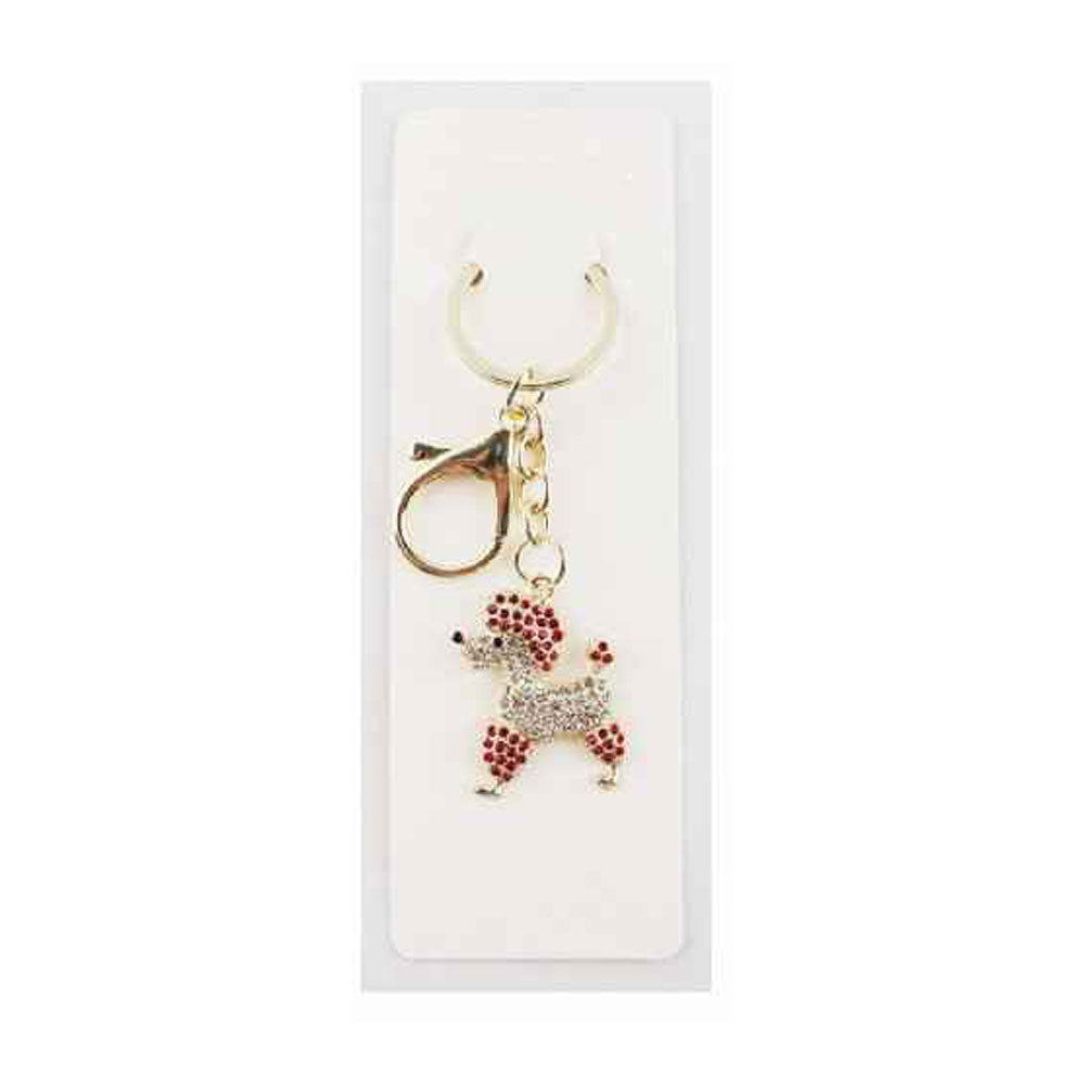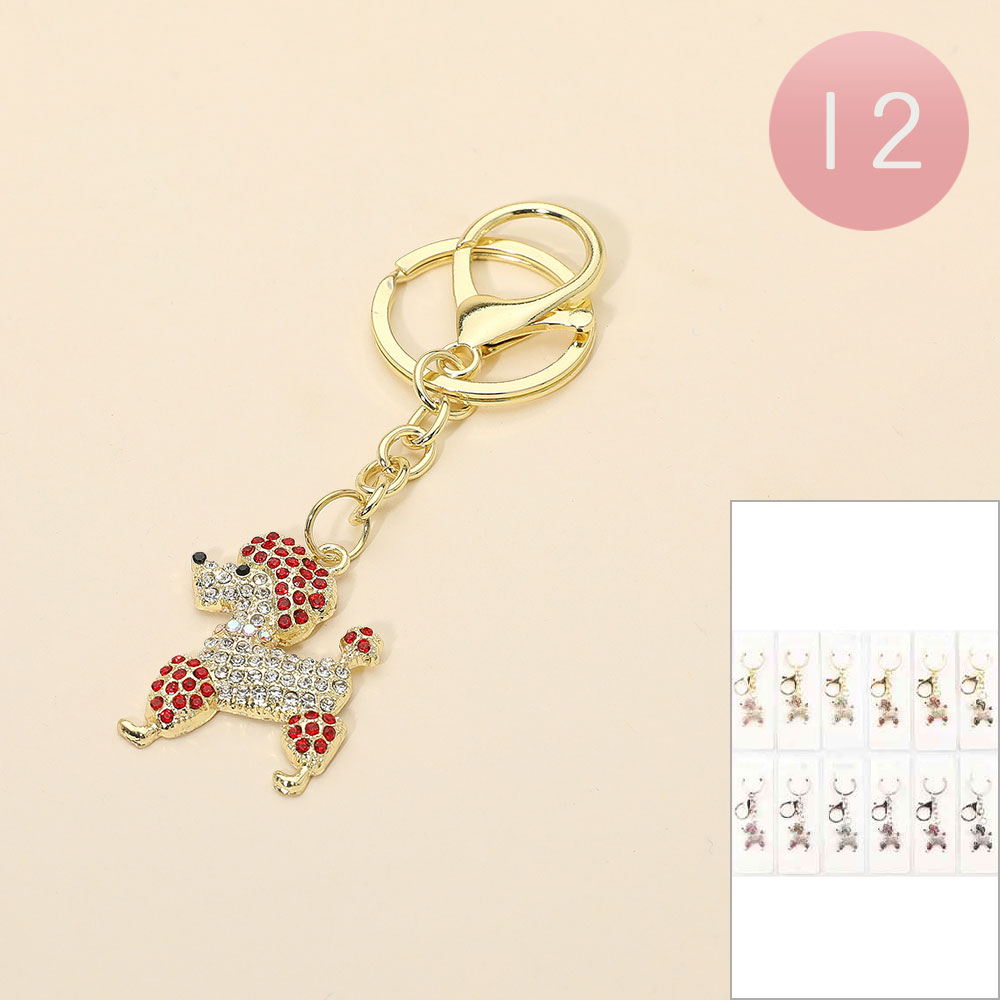 12PCS - Rhinestone Paved Poodle Dog Charm Drop Bag Charm Keychain