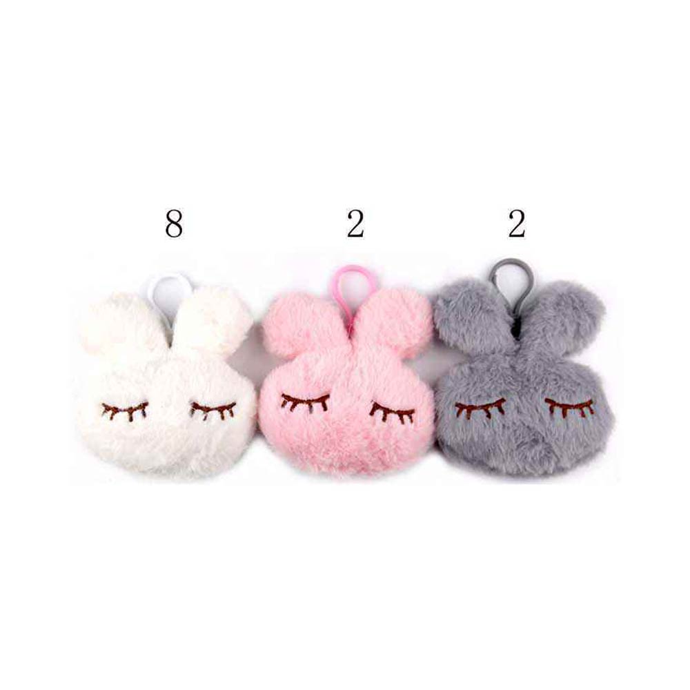• Soft plush bunny face keychain featuring a playful sleepy expression and pom-style silhouette. Designed with a lightweight clip for easy attachment to bags, backpacks, or keys. A charming accessory choice for gift shops, party favors, seasonal displays, and cute character-themed collections.