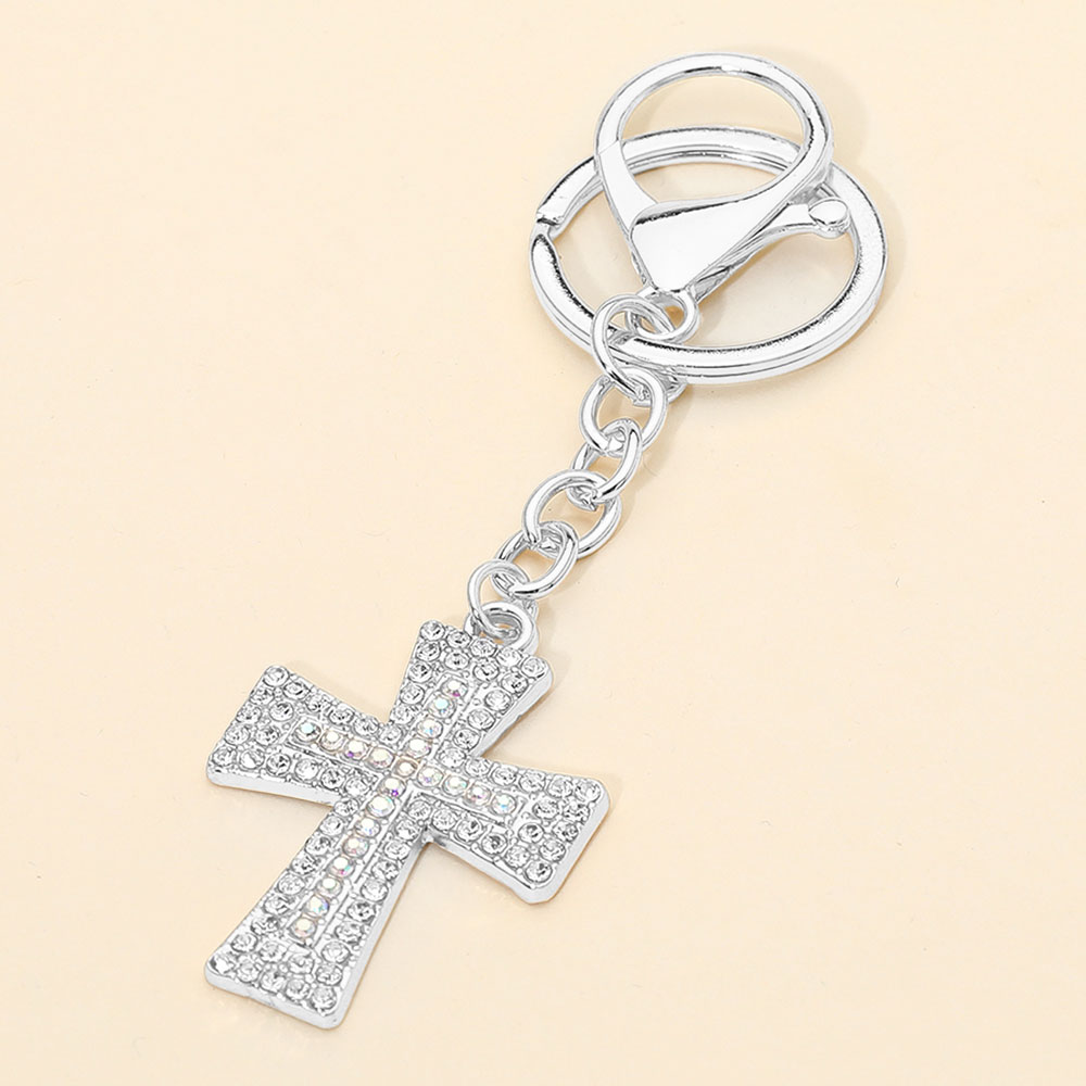 Details • Size : 4" L, 1.5" X 3" • Crystal Cross Keychain Charm Accessory features a sparkling cross pendant design paired with a secure clasp for everyday use. Ideal for keys, bags, or gifts, it adds refined detail while staying lightweight, durable, and easy to attach for daily convenience.