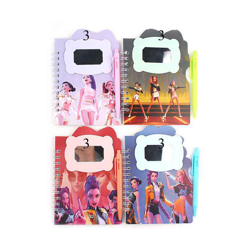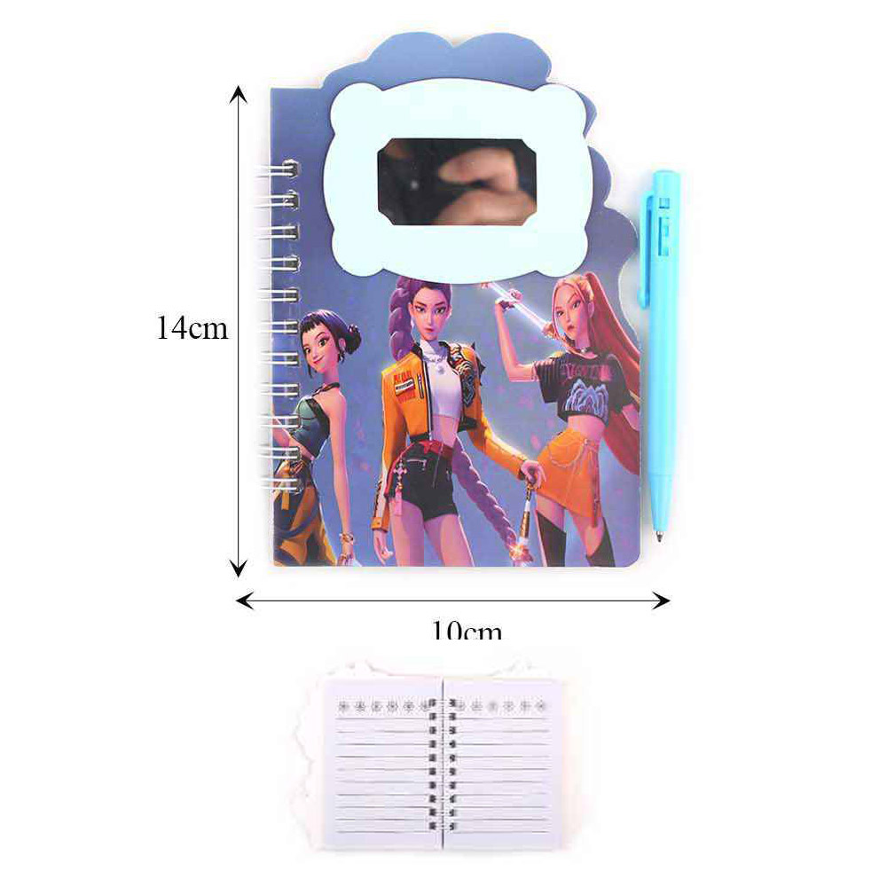 Details • Note Size : 4" X 5.6" • Ball Pen Size : 4" L • Spiral notebook featuring kpop demon hunters character-inspired cover design with a writable interior and included pen for everyday notes, journaling, and planning. Ideal for school supplies, gift assortments, and trend-focused stationery displays that appeal to pop culture and novelty shoppers.