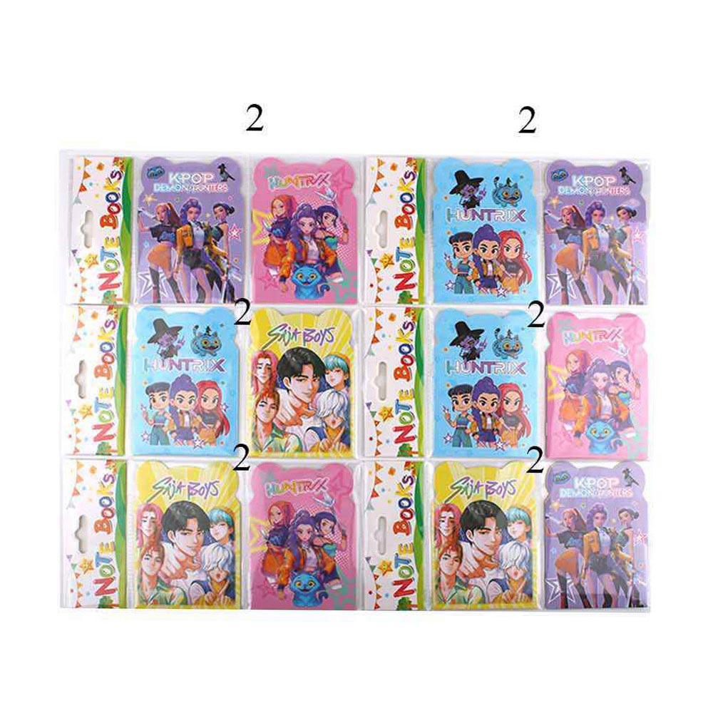 Details • Size : 3.4" X 4.7" • Mini notebook set featuring fun kpop demon monster character artwork covers, ideal for notes, journaling, doodling, and lists. Compact and easy to carry, this stationery set is perfect for school supplies, party favors, gift shops, and pop culture–inspired collections that encourage everyday creativity and writing.