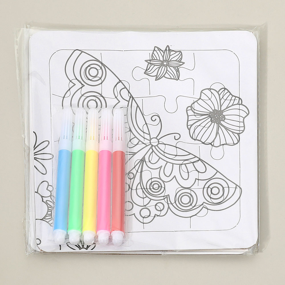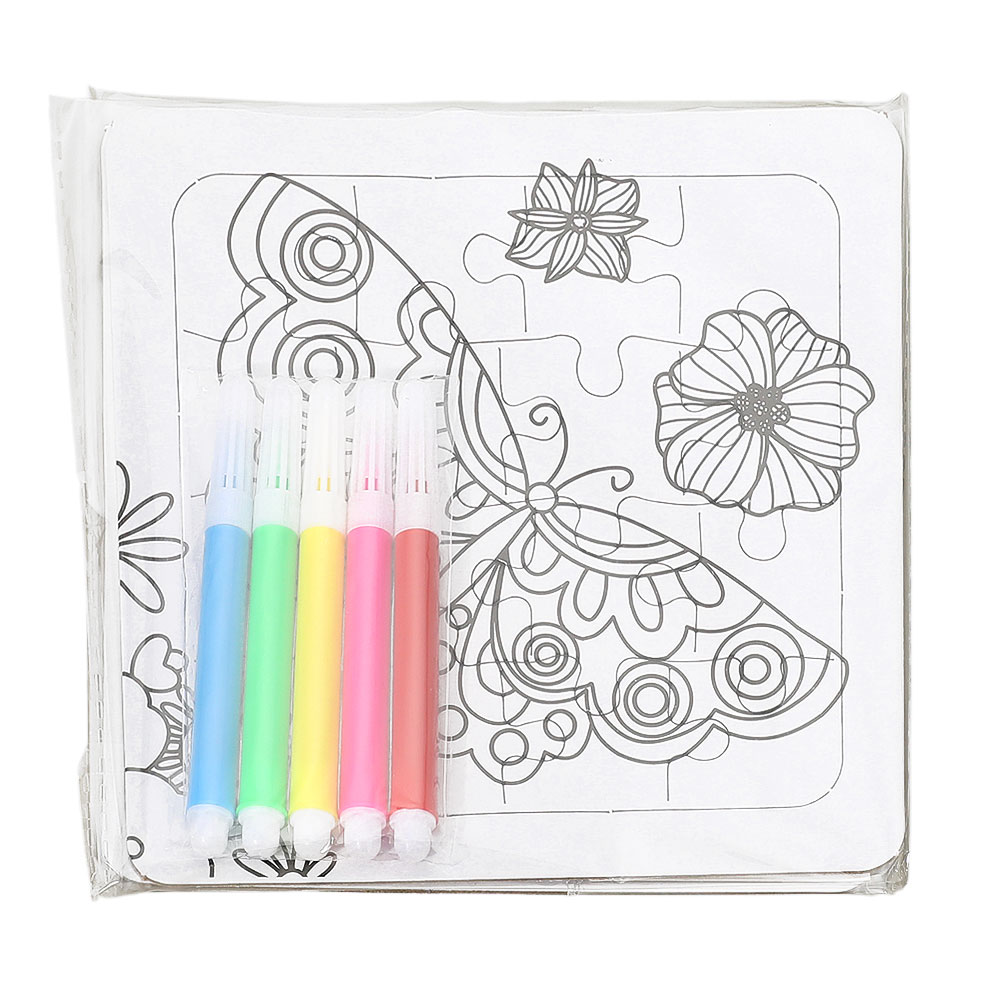 • Set of 12 butterfly-themed coloring puzzle with matching markers. Each pack includes a puzzle featuring floral and butterfly outlines for creative coloring fun. Perfect for kids’ parties, classroom art, or travel activities—promotes creativity and fine motor skills in a playful way.