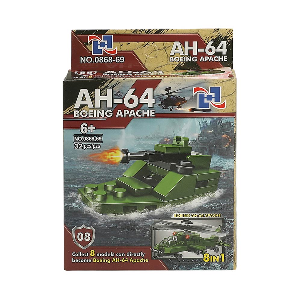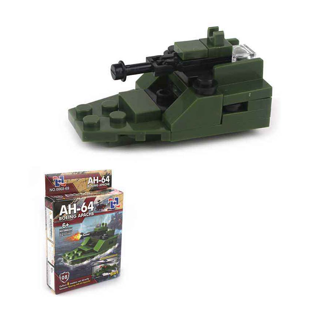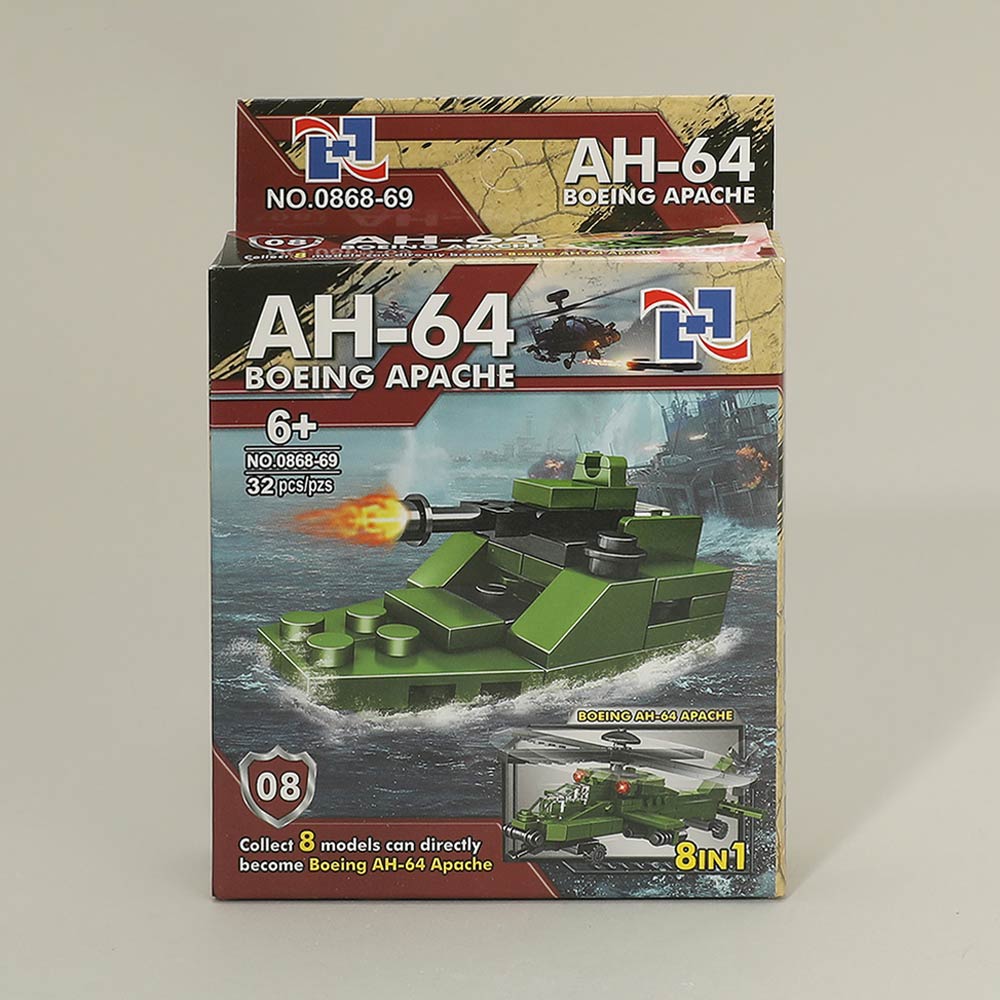 Details • Size : 3.6" X 5.25" • This AH-64 helicopter building block set includes 12 mini construction kits with assorted vehicle designs. Supports creative play, fine motor skills, and problem-solving as kids build, display, and combine models. Great for party favors, gift sets, classroom prizes, and toy assortments.
