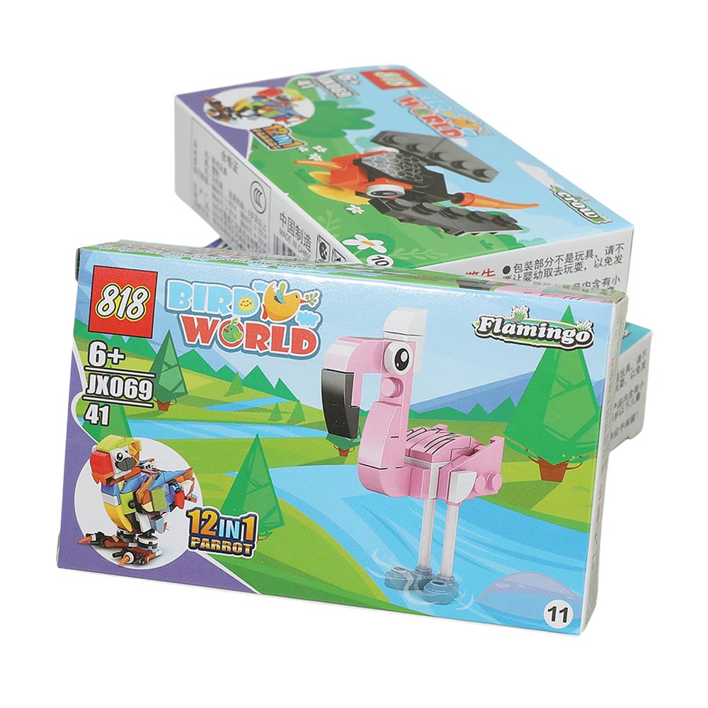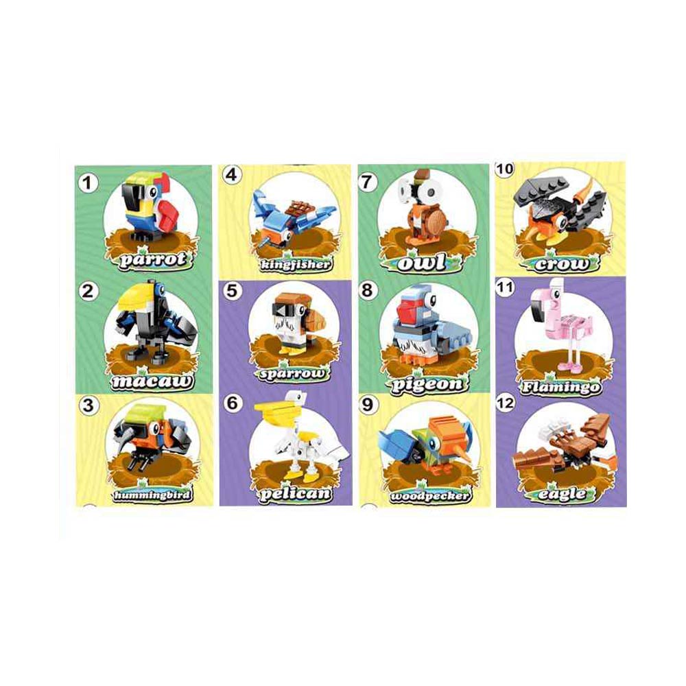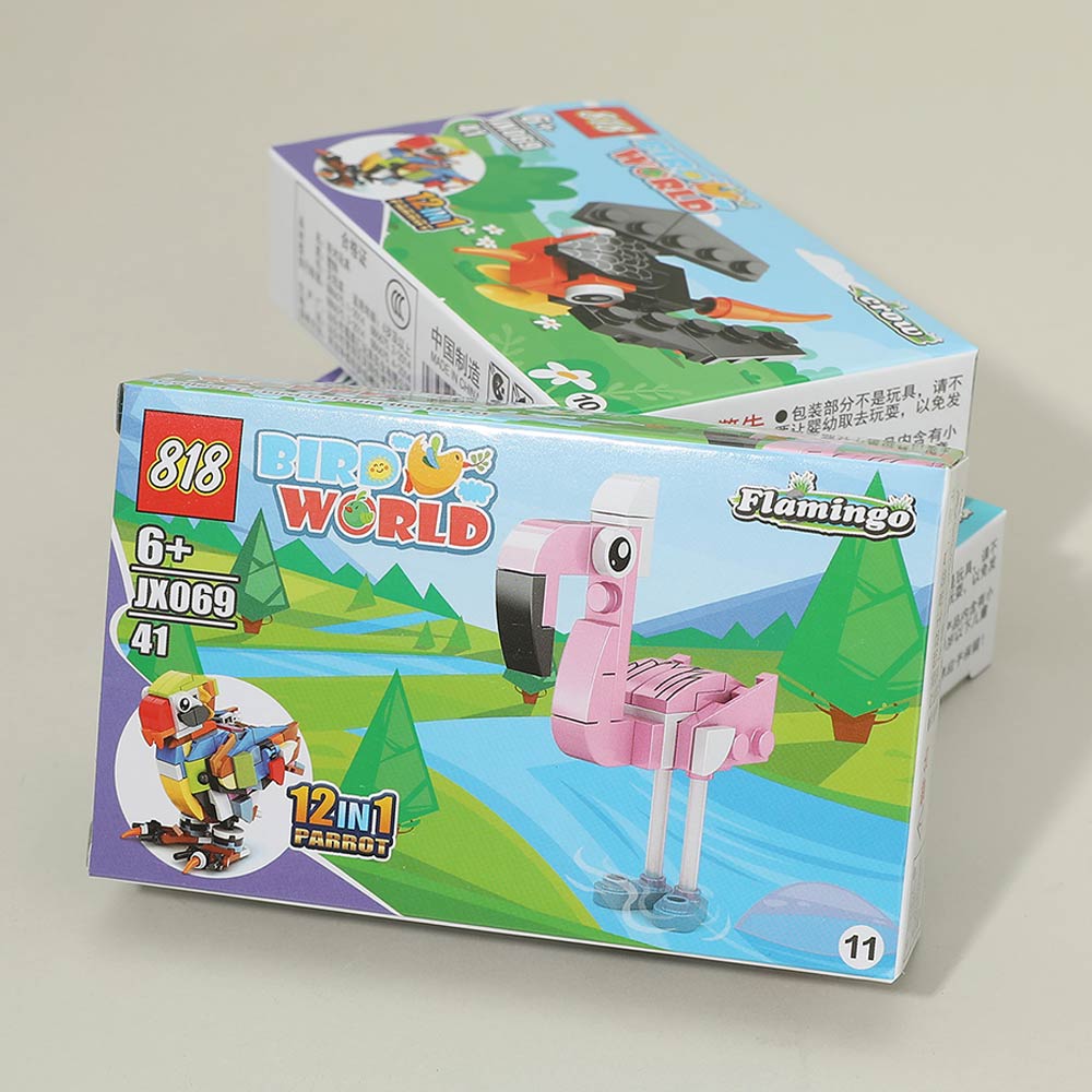 Details • Size : 4.5" X 2.7" • This Bird World mini building toy offers a fun 12-in-1 construction experience that encourages creativity and hands-on learning. Each set helps develop fine motor skills, problem-solving, and imagination while introducing playful animal themes. Ideal for party favors, classroom rewards, gift shops, and novelty toy assortments for kids.