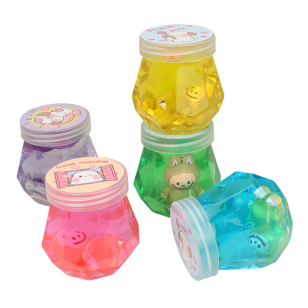 Details • Size : 2.6" X 2.6" • The Cartoon Character Crystal Mud Set includes fun, colorful jars filled with soft, stretchable slime and adorable character charms inside. Perfect for kids and collectors, these playful jars make a great sensory toy or gift, combining creativity, relaxation, and endless entertainment.