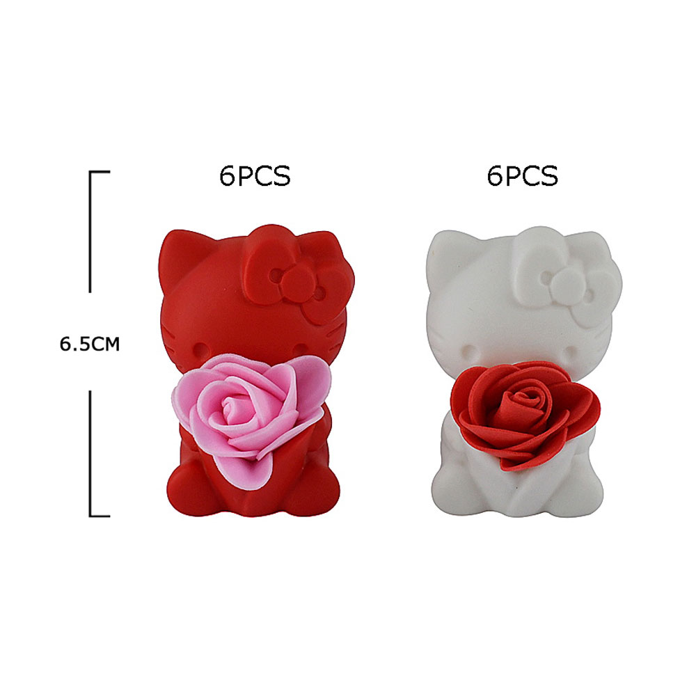 Details • Size : 1.75" X 2.5" • Charming kitty light-up figurines holding soft foam roses, perfect for kids’ Valentine gifts, party favors, and classroom exchanges. Each set includes 12 assorted pieces with glowing LED design, adding a fun and adorable touch to celebrations and gift bags.