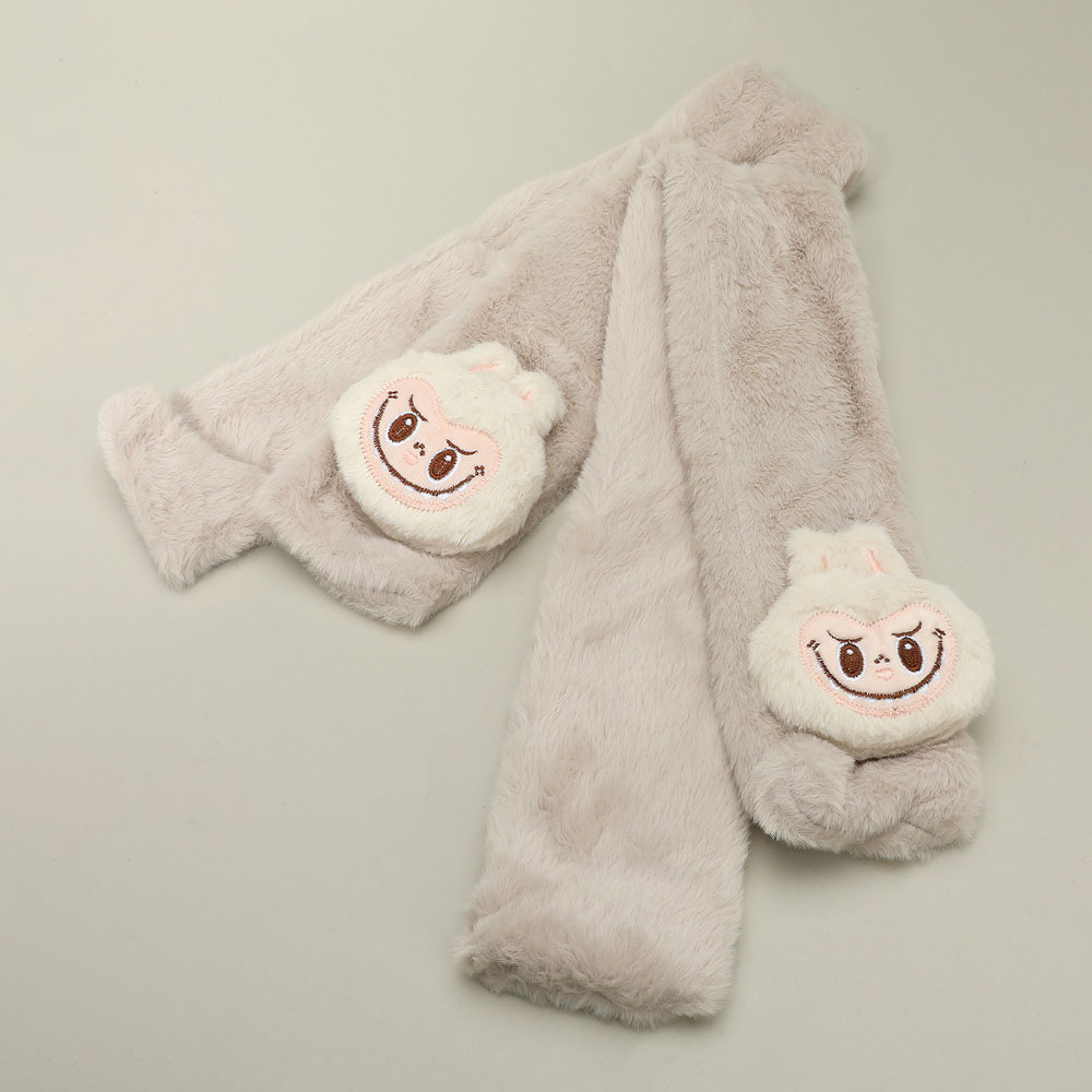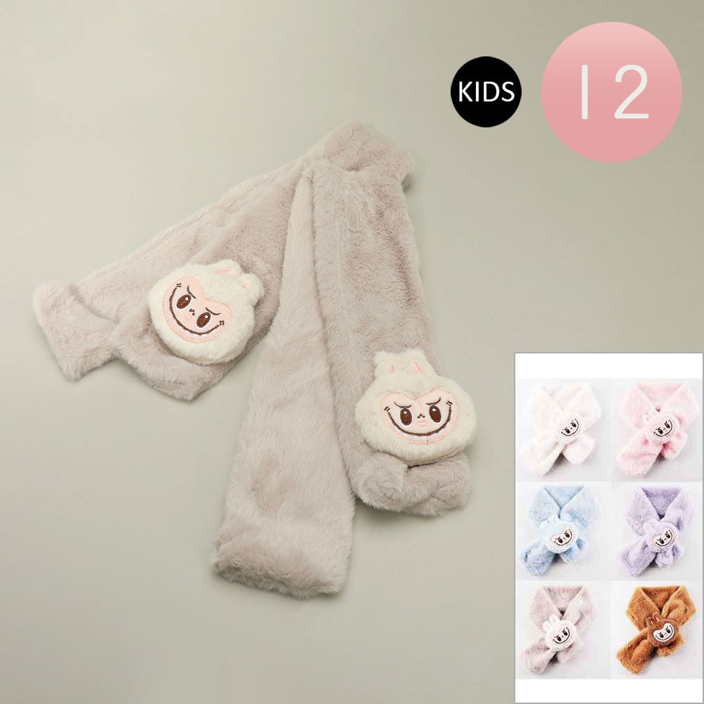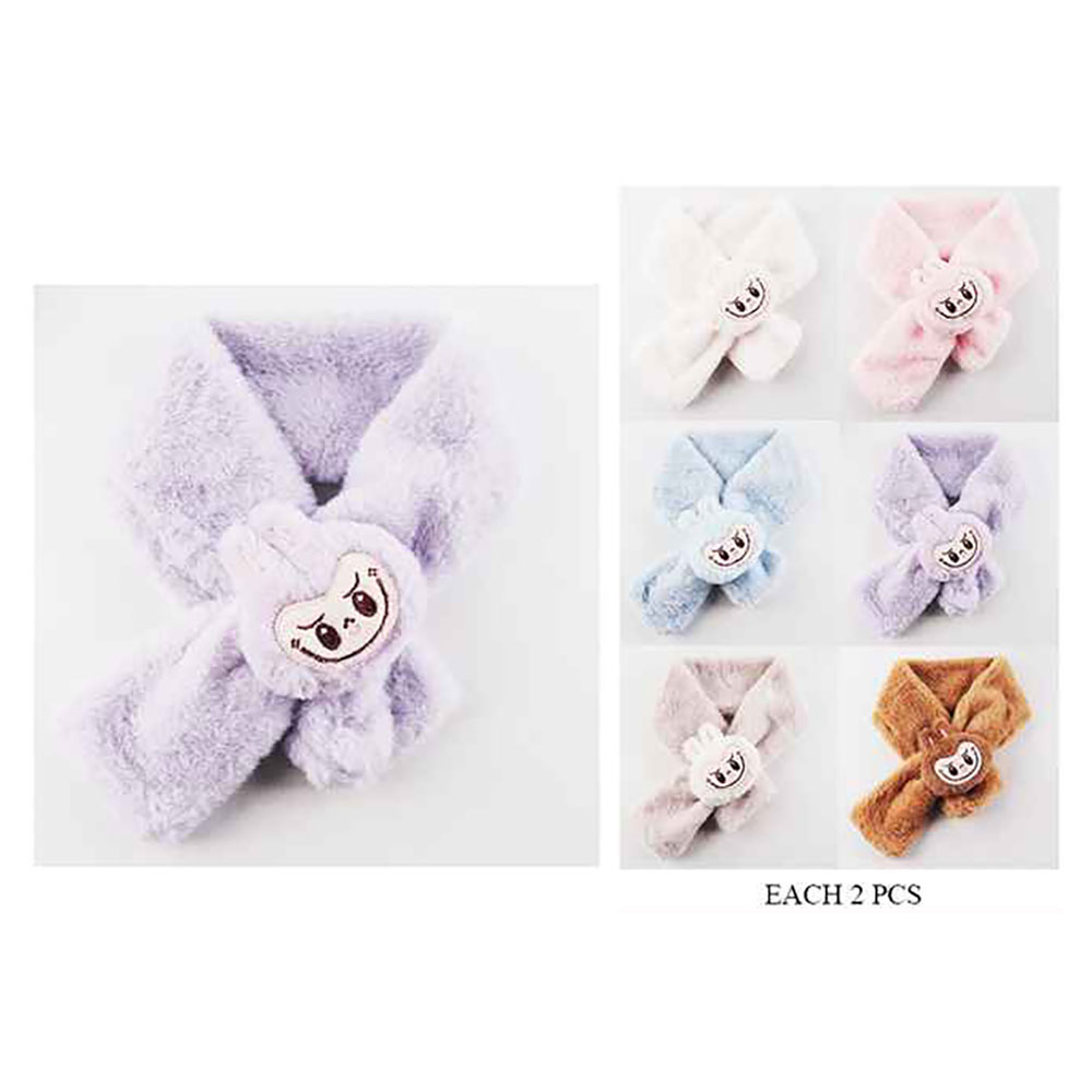 Details • Size : 4" X 3.1" • Cozy kids’ plush scarf featuring embroidered cartoon bunny-face patches for a playful touch. This soft fuzzy winter wrap keeps children warm while adding fun and charm, making it a perfect accessory for everyday wear or gifting.