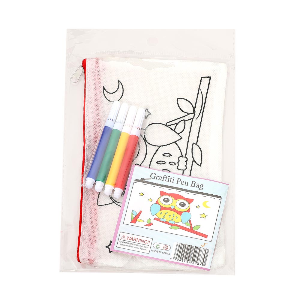 Details • Pouch Size : 4.7" X 8" • Pen Size : 3.5" L • Comes with 4 Colored Pens • Creative kids graffiti pen bag craft set featuring a printable zip pouch and included markers for easy decorating fun. Perfect for party favors, classroom projects, rainy-day activities, or travel entertainment that encourages hands-on creativity and imaginative play.