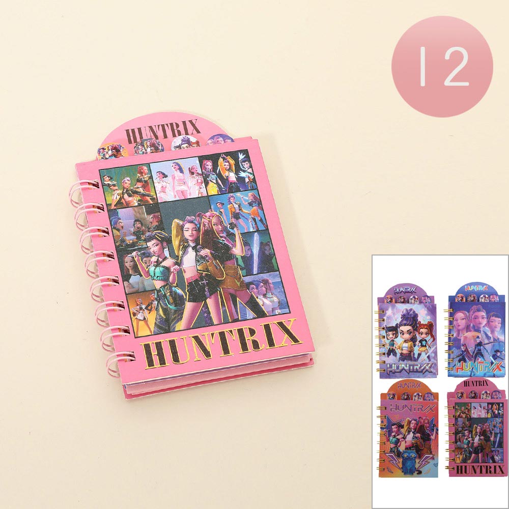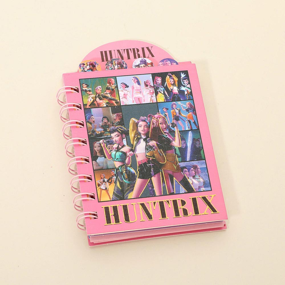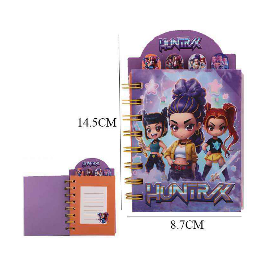 Details • Size : 3.5" X 4.5" • Mini spiral notebook featuring a dynamic kpop demon monster huntrix character collage cover, ideal for notes, journaling, lists, and sketches. Compact and easy to carry, it’s perfect for school supplies, party favors, gift shops, and pop culture–inspired stationery collections that encourage everyday writing and creativity.