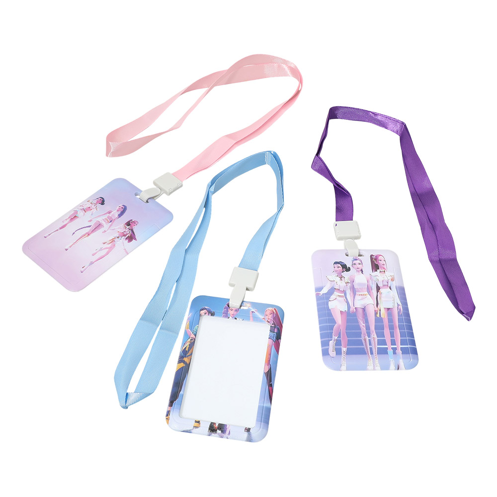 Details • Size : 21.5" L, 2.75" X 4.25" • This Kpop Demon Hunters Huntrix photo ID lanyard badge holder set features collectible-style photo inserts with wearable lanyards for easy display. Ideal for concerts, events, fan gatherings, school IDs, or casual daily use, it adds personality while keeping passes accessible. A fun giftable accessory for fans, trend shops, and novelty collections seeking eye-catching, wearable ID solutions.