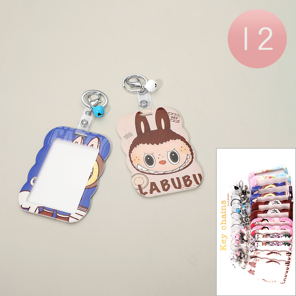 Details • Size : 6.75" L, 2.8" X 4.25" • Set of 12 cute monster bunny cartoon character ID holders with metal keychain and bell attachment. Each features assorted playful designs and vibrant colors—perfect for badges, access cards, or keys, adding a touch of fun and personality to work, school, or travel essentials.