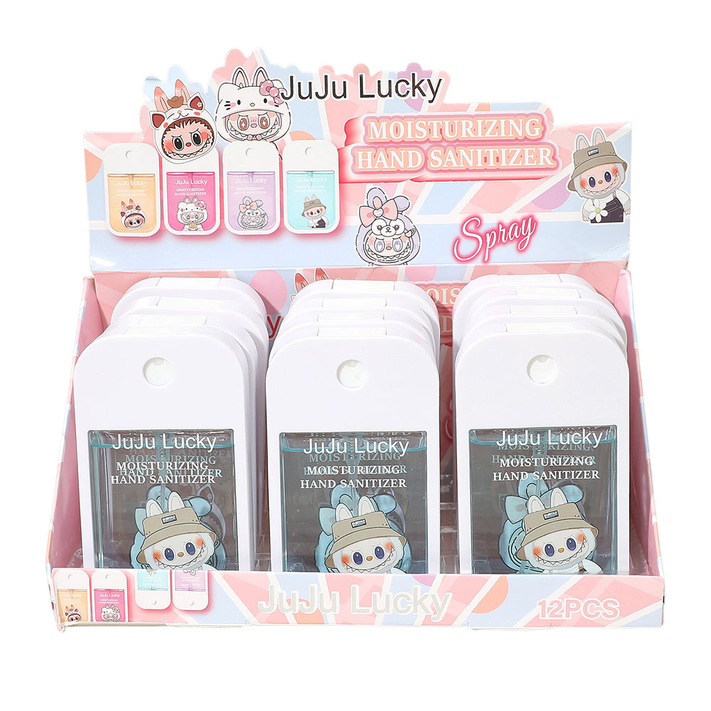 Details • Size : 2.25" X 4" (4.5ml) • Keep hands clean and soft with this 12-piece cartoon moisturizing hand sanitizer spray set. Featuring adorable character designs and compact bottles, each sanitizer offers refreshing protection on the go. Perfect for travel, school, or gifts while maintaining hygiene in style.