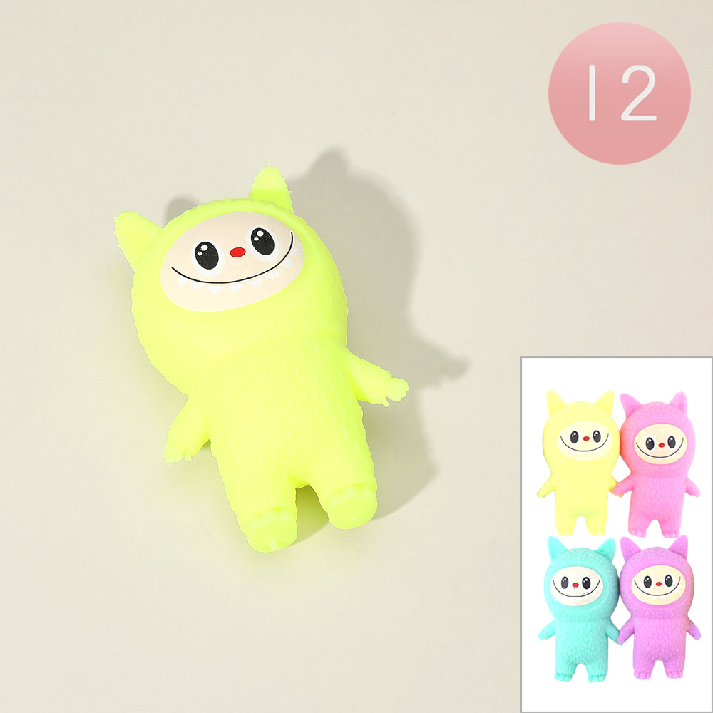 Details • Size : 4.3" L • Adorable monster bunny squishy toy collection featuring 12 soft and squeezable figures. Perfect for stress relief, party favors, or kids’ playtime. Each figure has a fun character design that makes a delightful collectible and a playful sensory toy for all ages.