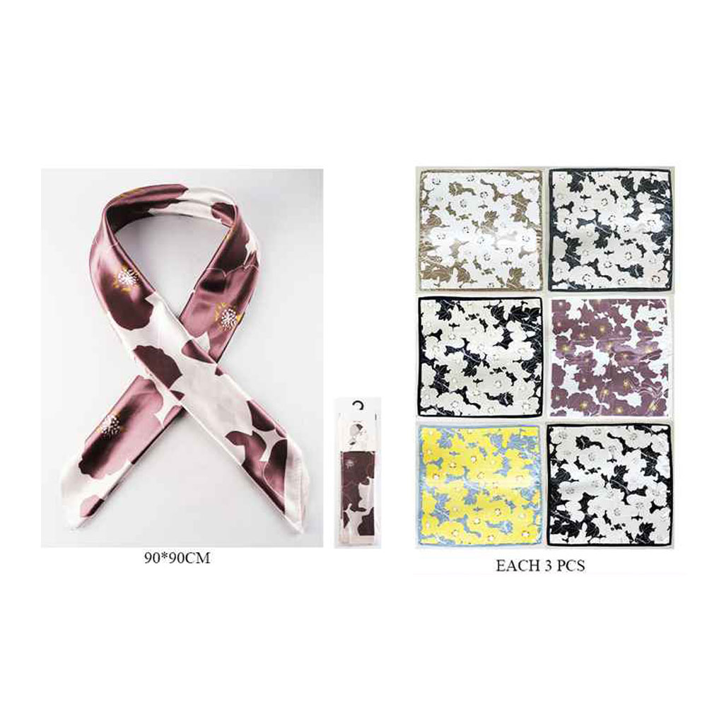 Details • Size : 36" X 36" • Material : 100% Polyester • Elevate everyday styling with this elegant square scarf featuring refined floral motifs. Ideal for wearing at the neck, hair, wrist, or bag, it delivers versatile charm that transitions effortlessly from casual looks to polished ensembles.