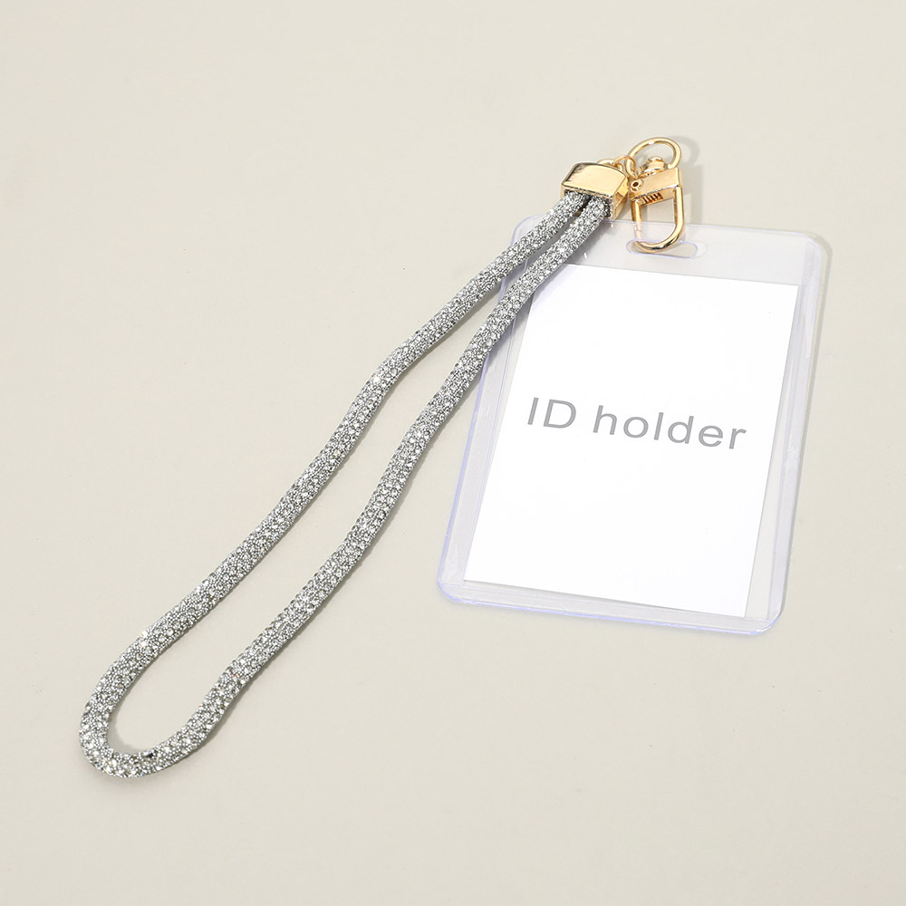 • Add a touch of sparkle to your workday with the Sparkling Lanyard ID Holder. Featuring a chic rhinestone strap and clear card sleeve, this fashionable holder keeps your ID, badge, or access card secure and easily accessible while complementing your professional style effortlessly.