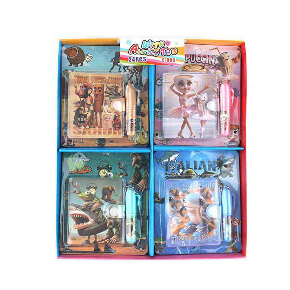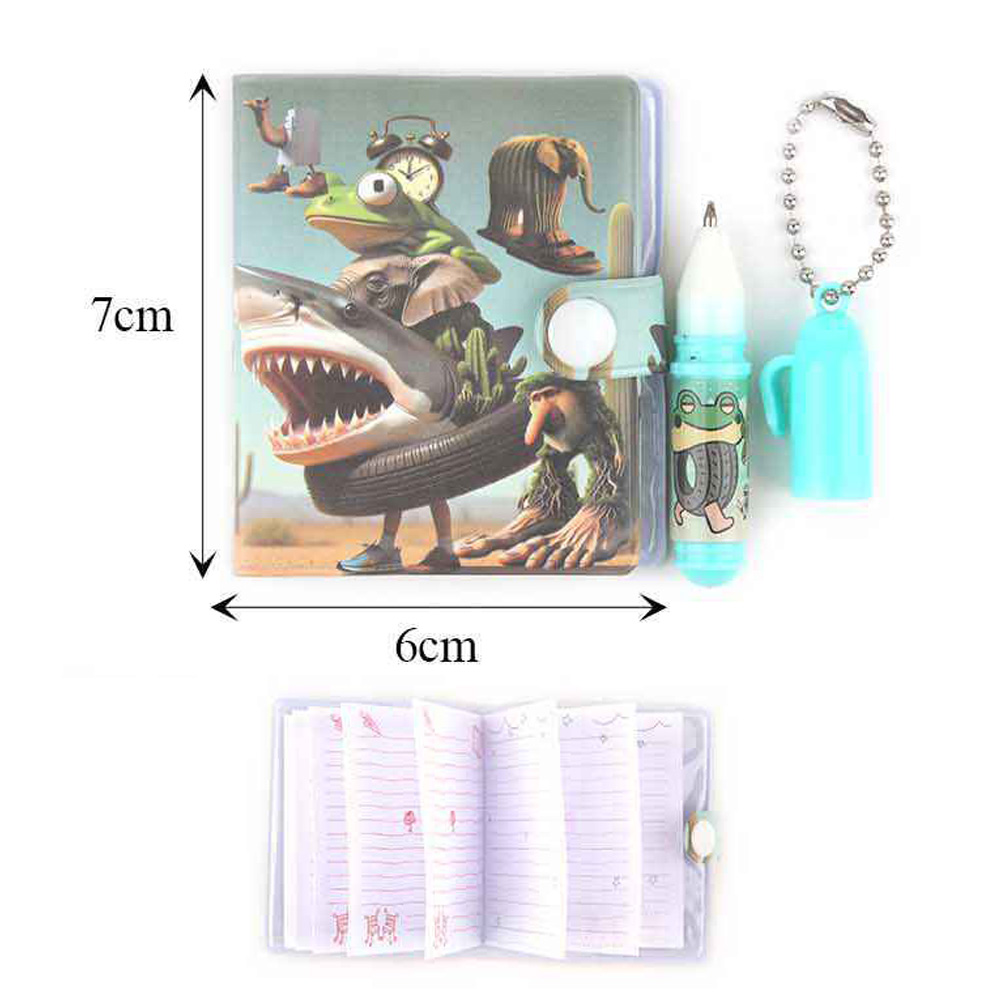 Details • Note Size : 2.4" X 2.75" • Pen Size : 2.5" L • Brighten up study or playtime with this assorted cartoon notebook and pen set, featuring fun character designs kids love. Each pack includes a compact notebook with a matching pen—perfect for school, journaling, or creative doodles. A delightful gift or party favor for young writers.