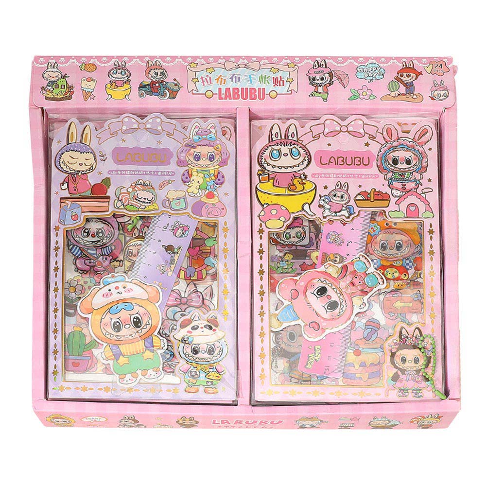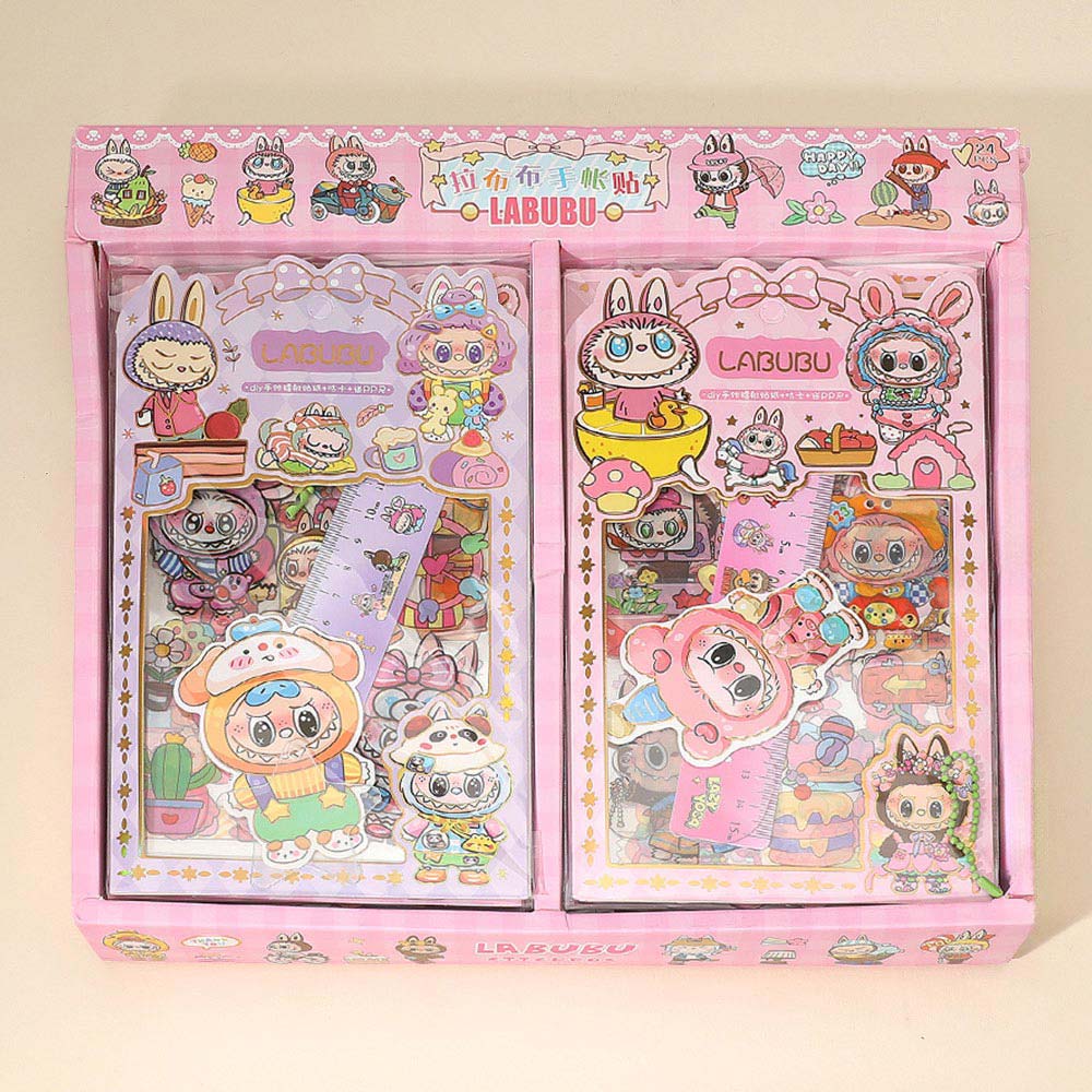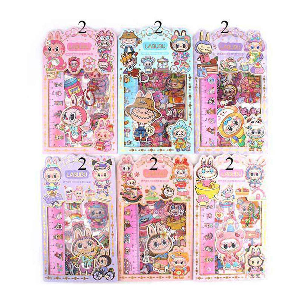 Details • Sticker Sheet Size : 4.7" X 6" • Character Card Size : 3.5" L • Ruler Size : 1.25" X 6.5" • Clear Tag Size : 3.25" L • Brighten up any desk with this cute character stationery sticker gift box. Filled with fun pens, stickers, and accessories, it encourages creativity and organization in a playful way. Ideal for gifting or school use, this charming set adds joy and color to every writing or crafting session.