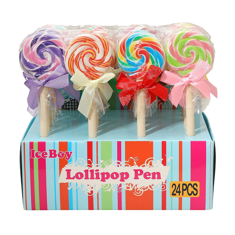 • Fun and colorful 24-pack lollipop pens designed with a swirl candy look and cute ribbon bows. Ideal for party favors, classroom rewards, or desk accessories. These playful novelty pens make writing delightful while adding a sweet touch to gifts and stationery collections.