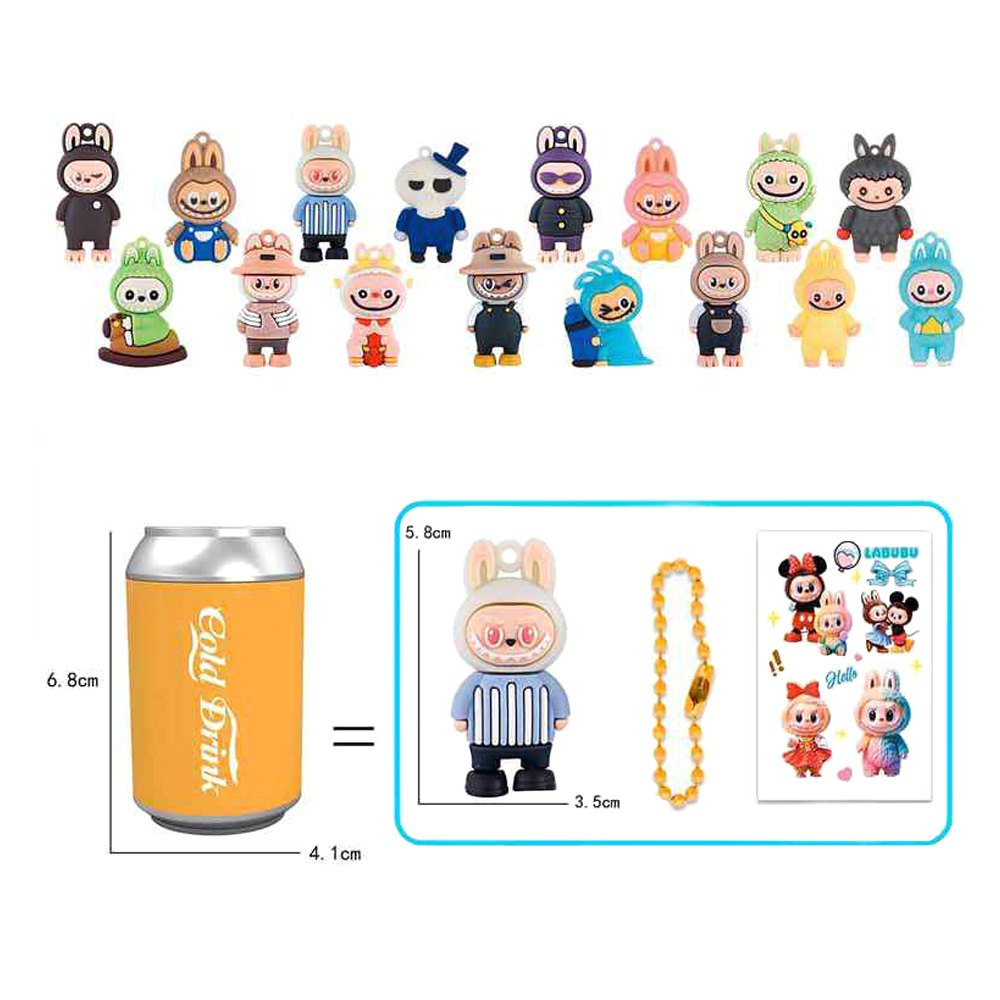 Details • Size : 1.6" X 2.6" • Fun mystery surprise can toy featuring adorable collectible cartoon figures with keychains. Each sealed can includes one random mini figure and stickers, perfect for kids and collectors. Great for party favors, surprise gifts, or trading fun. Collect them all for a complete set!