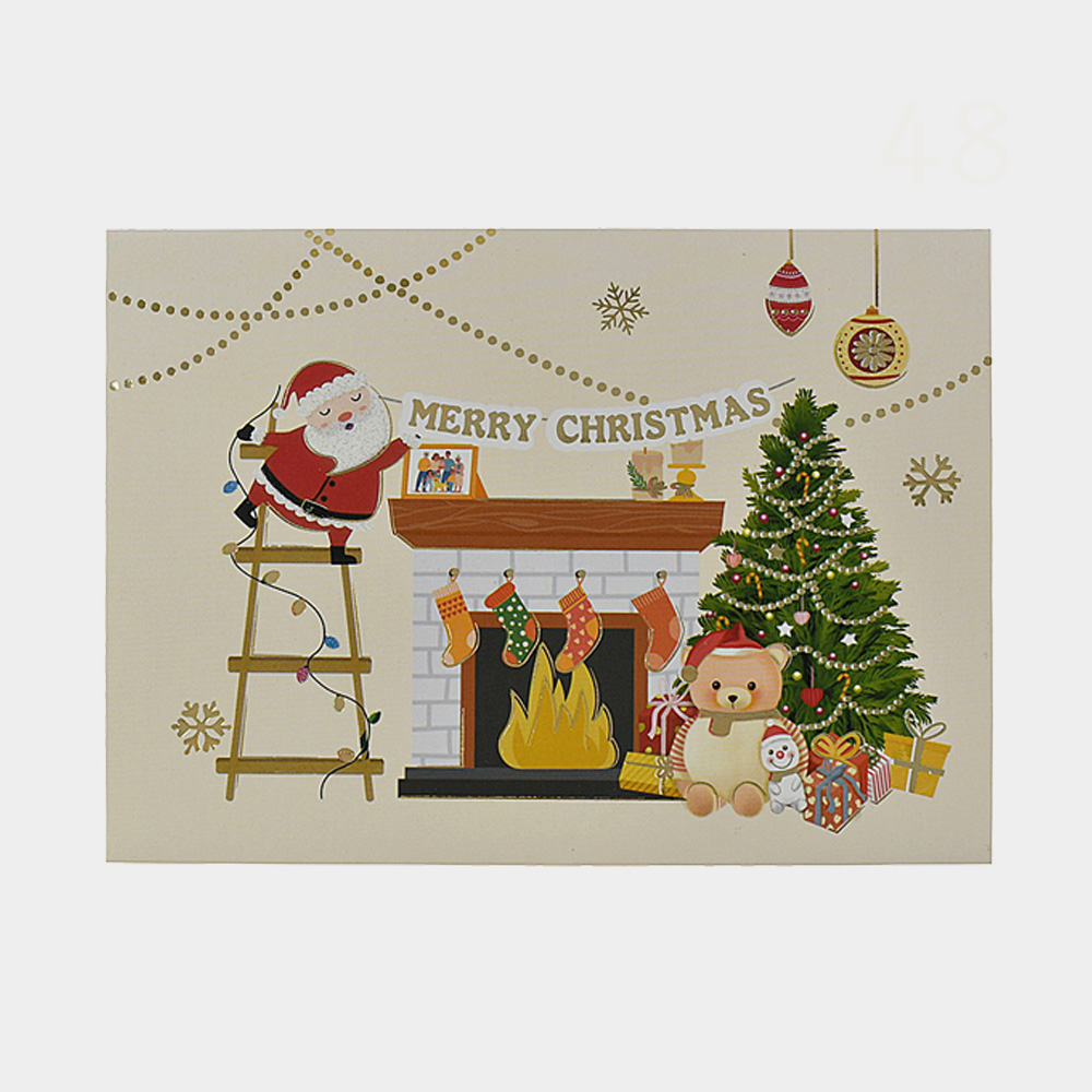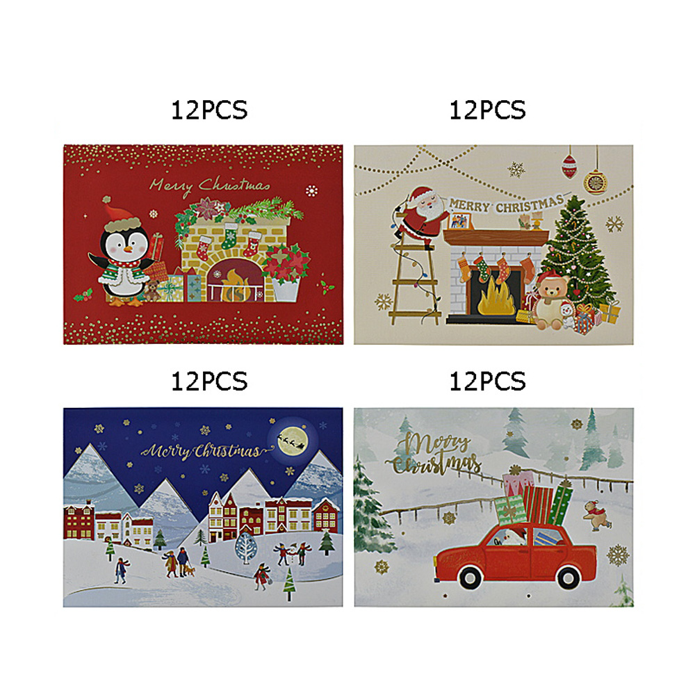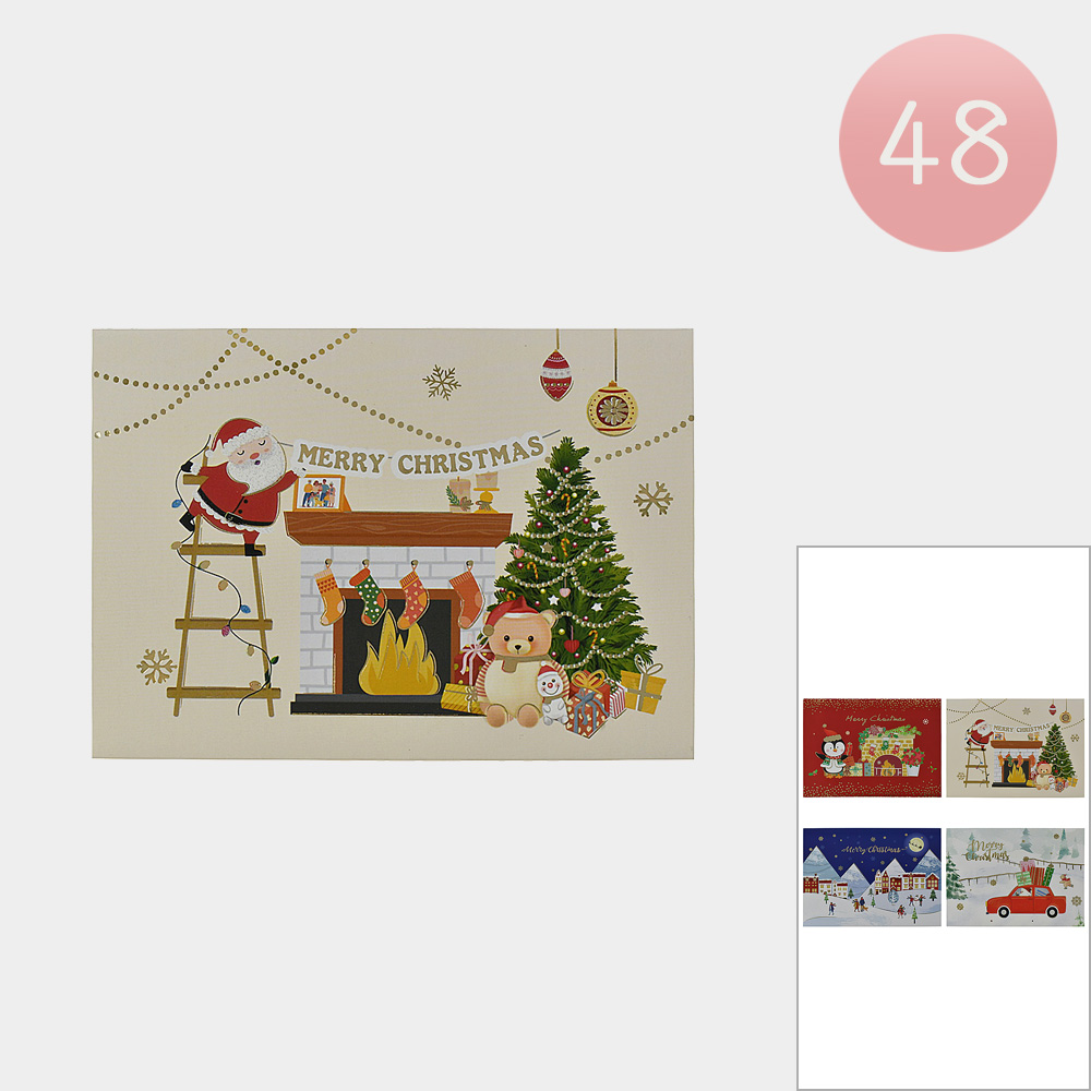 Details • Size : 5.25" X 7" • Envelope Size : 5.5" X 7.75" • Share the holiday spirit with these assorted Christmas greeting cards featuring cozy fireplace scenes, decorated trees, Santa, and festive winter landscapes. Perfect for spreading joy and warm wishes, these charming cards make every holiday message extra special.