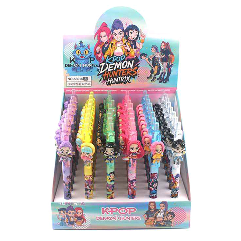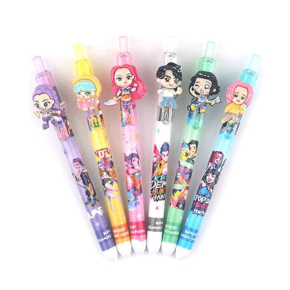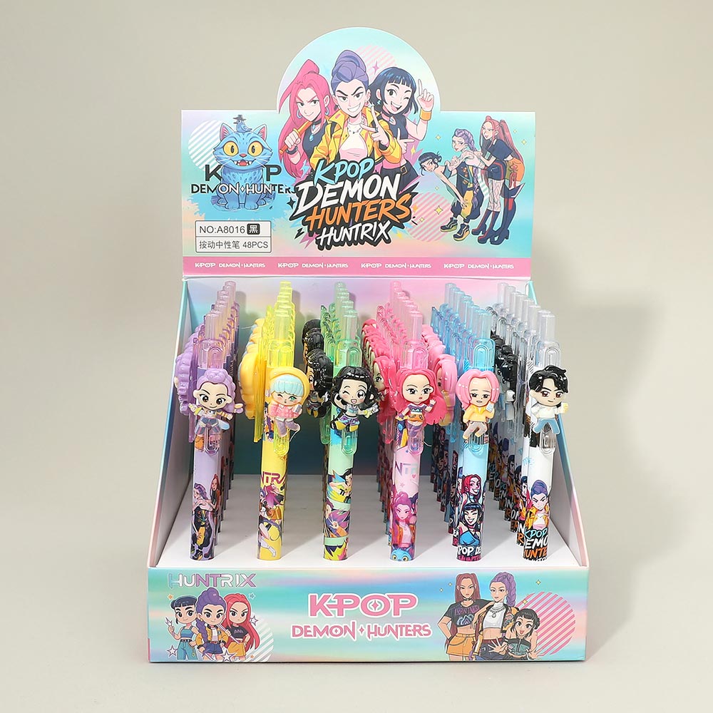 Details • Size : 5.5" L • Kpop Demon Hunters HUNTRIX character themed gel pen featuring fun illustrated toppers and smooth writing performance. Ideal for school, office, party favors, and gift shops. Eye-catching counter display encourages impulse purchases and adds value to stationery, novelty, and pop culture collections.