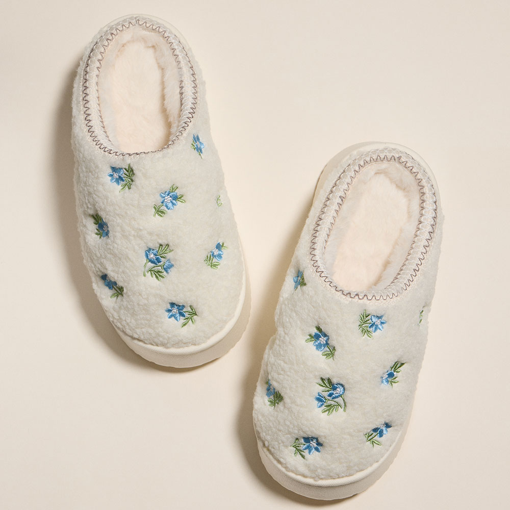 Details • Size : 6 Pairs Assorted size in each pack • 2 Small, 3 Medium, 1 Large • S: women size 6-7 (260 mm) 38-39 • M: women size 8-9 (270mm) 40-41 • L: women size 10-11 (280mm) 42-43 • Material: 50% PVC, 50% Polyester • Sherpa, Rubber Sole • Step into comfort with these sherpa-lined slippers featuring delicate floral embroidery. Perfect for lounging at home, they offer plush warmth and a charming cottagecore vibe all season long.