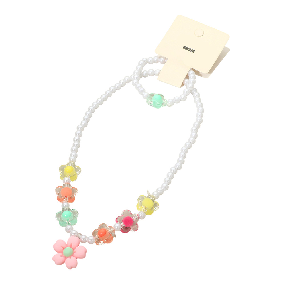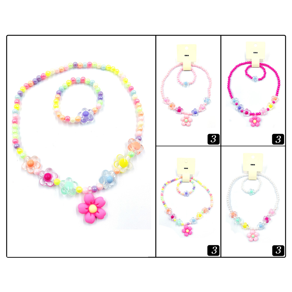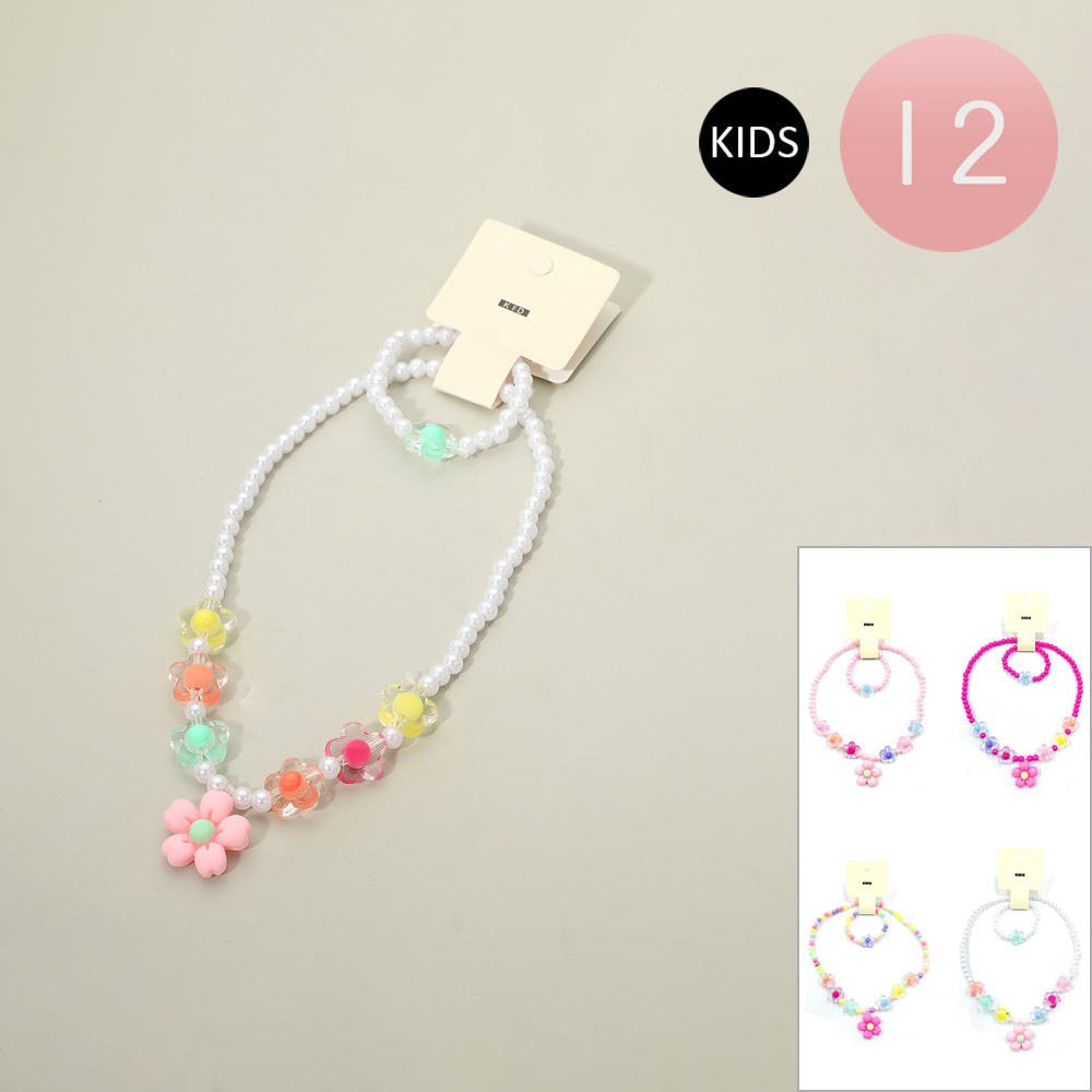 Details • Necklace Size : 9" L / Stretchable • Pendant Size : 1.2" L • Bracelet Size : 0.7" H / Stretchable • Adorable kids’ jewelry set featuring a cute flower charm on a beaded necklace with matching bracelet. Perfect for parties, birthdays, or everyday dress-up, this 12-piece pack adds playful style and fun to children’s outfits, making it a charming accessory choice for little ones.