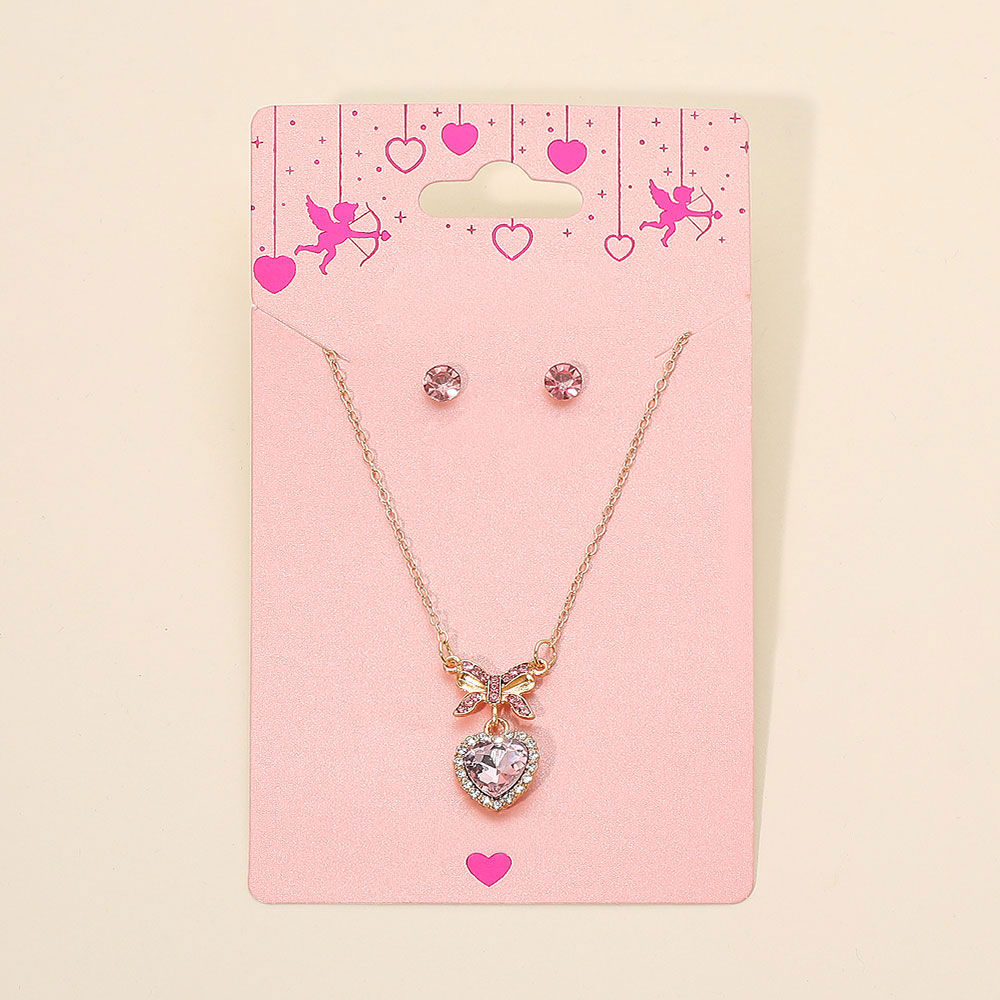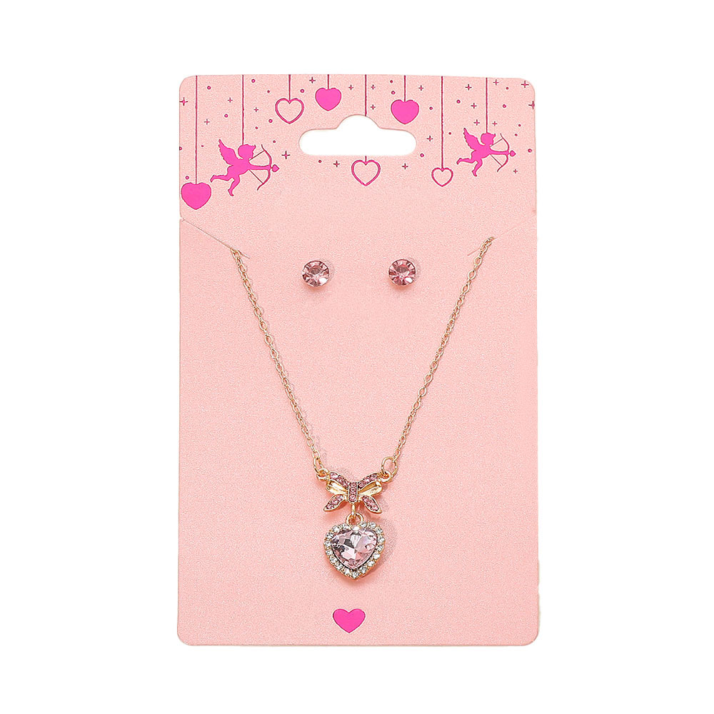Details • Necklace Size : 19" + 3" L • Pendant Size : 0.75" X 1" • Earrings Size : 0.25" L • This necklace and stud earring set features a heart pendant accented with delicate details, paired with matching stud earrings for a coordinated finish. A charming accessory duo suited for casual looks, gifting, party outfits, and everyday wear, adding a playful yet elegant touch.