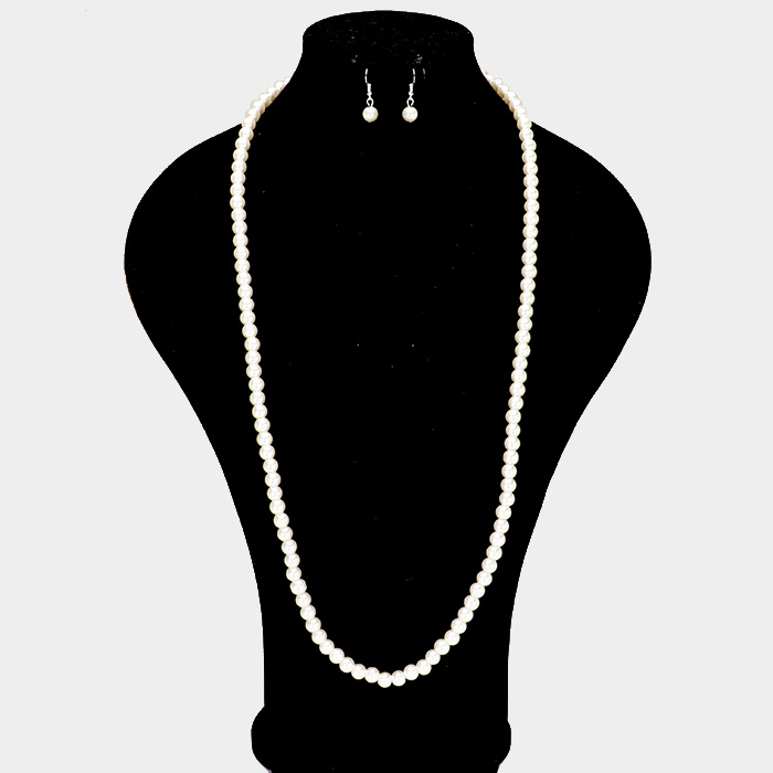 Rhinestone Paved Rose Pendant Double Layered Pearl Necklace