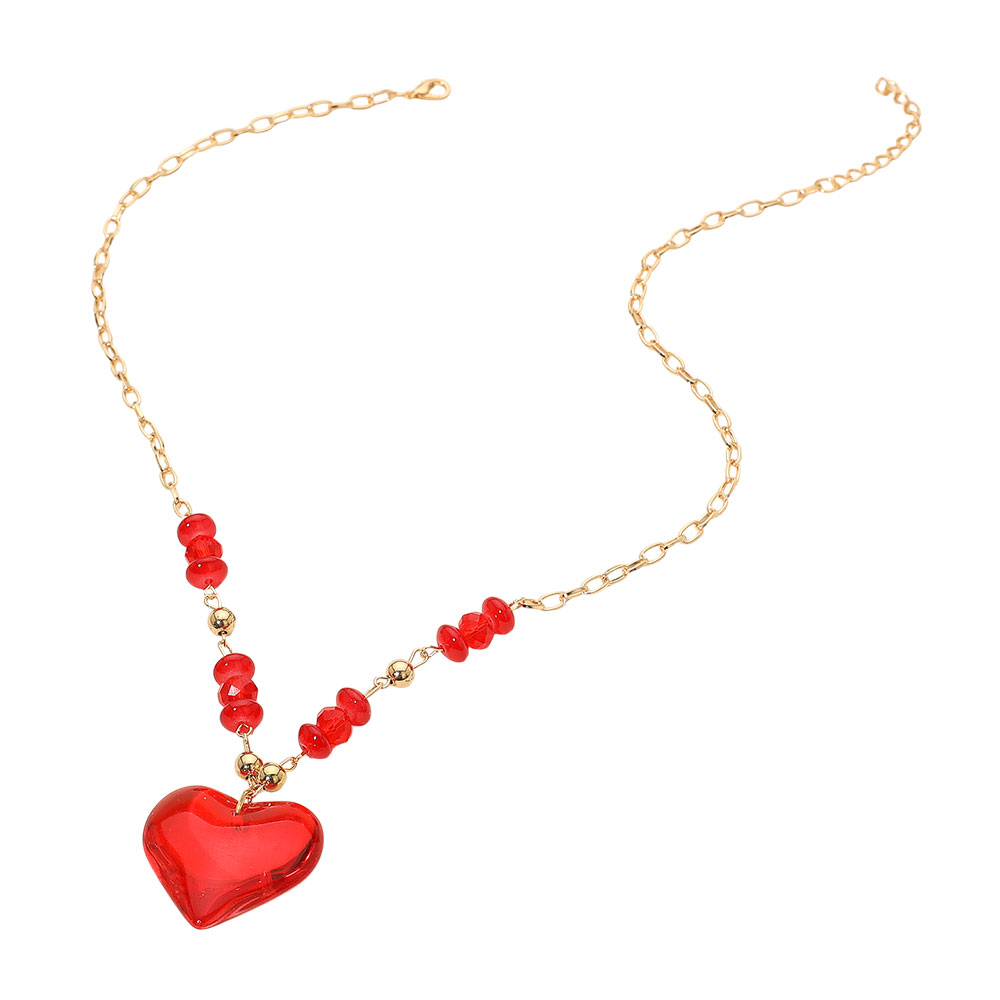 Details • Necklace Size : 20" + 2" L • Pendant Size : 1.4" X 1.4" • This heart charm beaded chain necklace brings a playful touch to everyday looks and themed outfits. Designed with a statement pendant and accent beads along a lightweight chain, it’s perfect for parties, gifting, photos, or casual wear. A fun piece that adds instant personality.