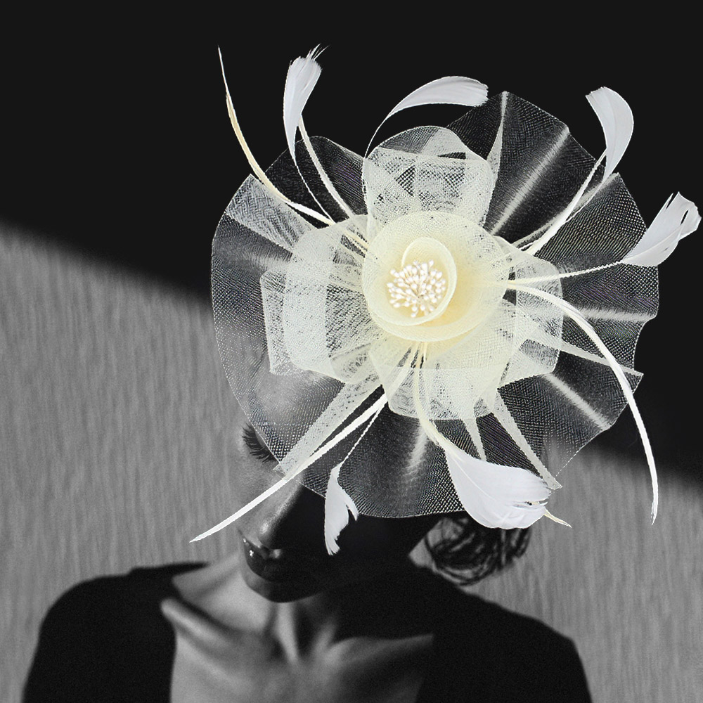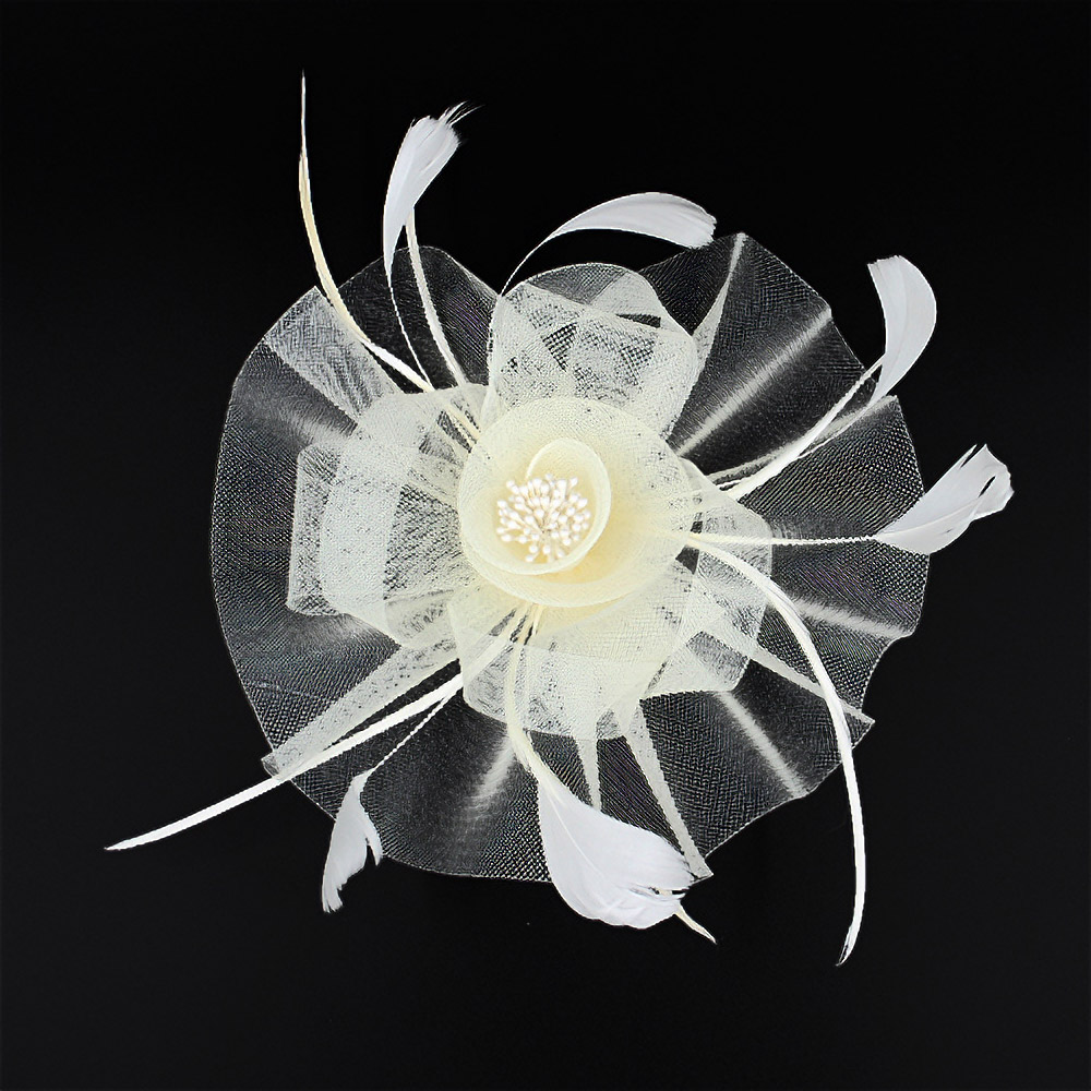 Feather Accent Mesh Floral Fascinator Hair Clip Headband