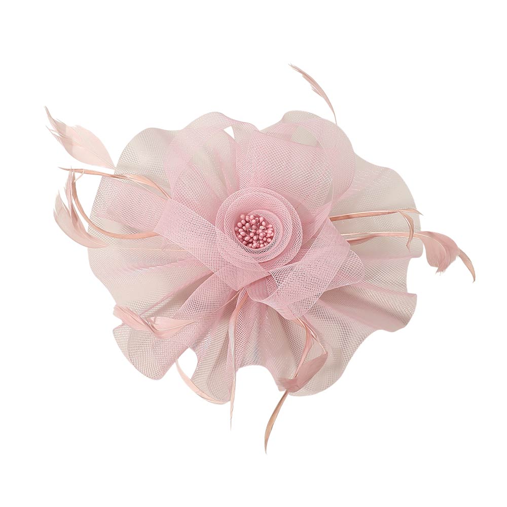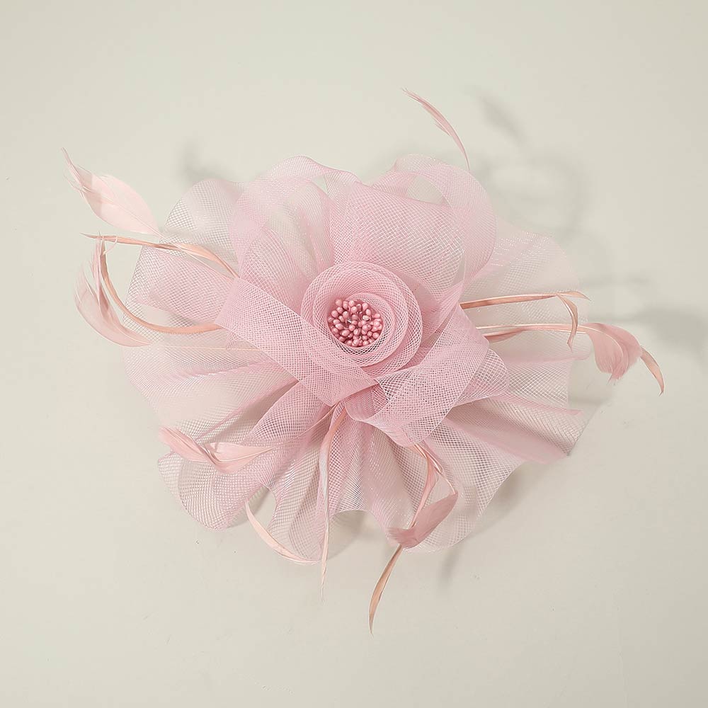 Feather Pearl Mesh Flower Fascinator / Headband