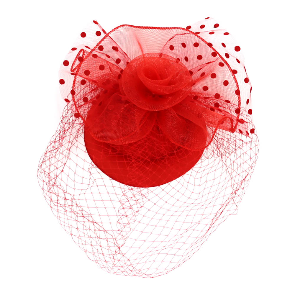 • Chic black fascinator hat featuring a delicate mesh veil, floral centerpiece, and dotted netting. Perfect for weddings, tea parties, races, or formal events, this headpiece adds timeless sophistication and classic charm.