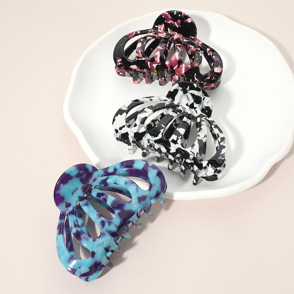 Details • Size : 3.75" X 2.5" • Keep your hair stylishly secure with this tortoiseshell pattern hair claw clip. Designed with a strong grip and lightweight feel, it’s perfect for quick updos or half-up styles. The elegant curved design adds a modern, chic touch to everyday or special occasion looks.