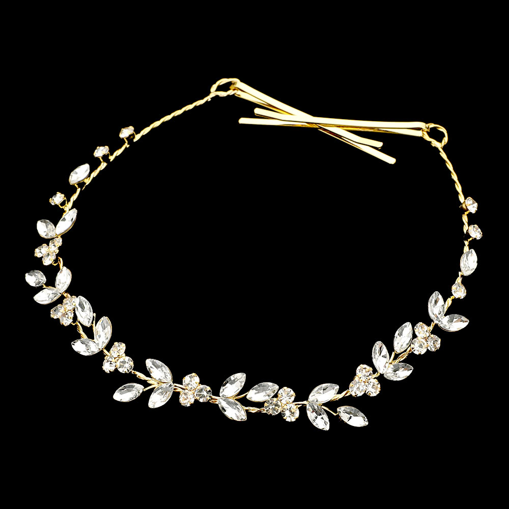 Details • Size : 11" X 0.5" • A Pair Bobby Pin Included • Elegant bridal hair halo featuring sparkling crystal leaves on a delicate vine design. Perfect for weddings, proms, and special occasions, this lightweight headpiece enhances updos and loose styles with timeless elegance. • CZ Cubic Zirconia